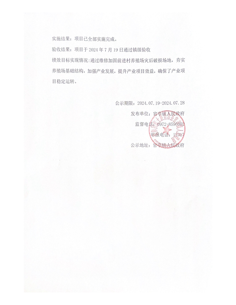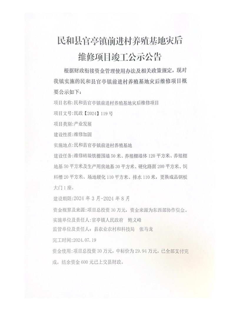 民和县官亭镇前进村养殖基地灾后维修项目竣工公示公告