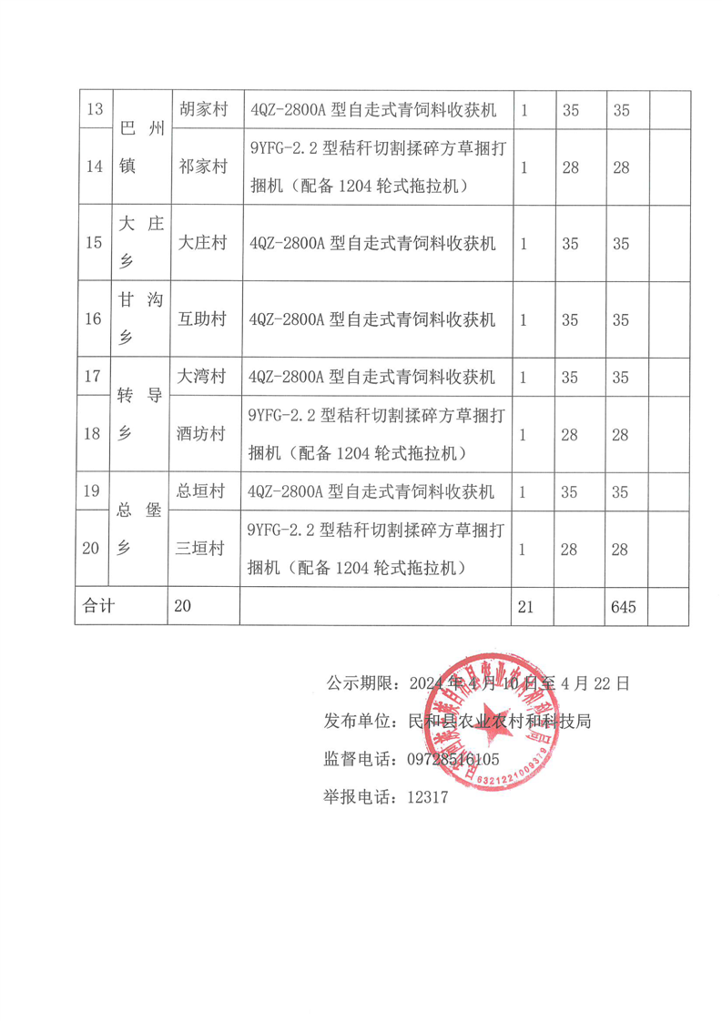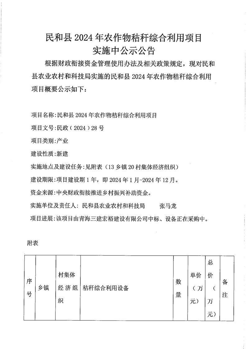 民和县2024年农作物秸秆综合利用项目实施中公示公告