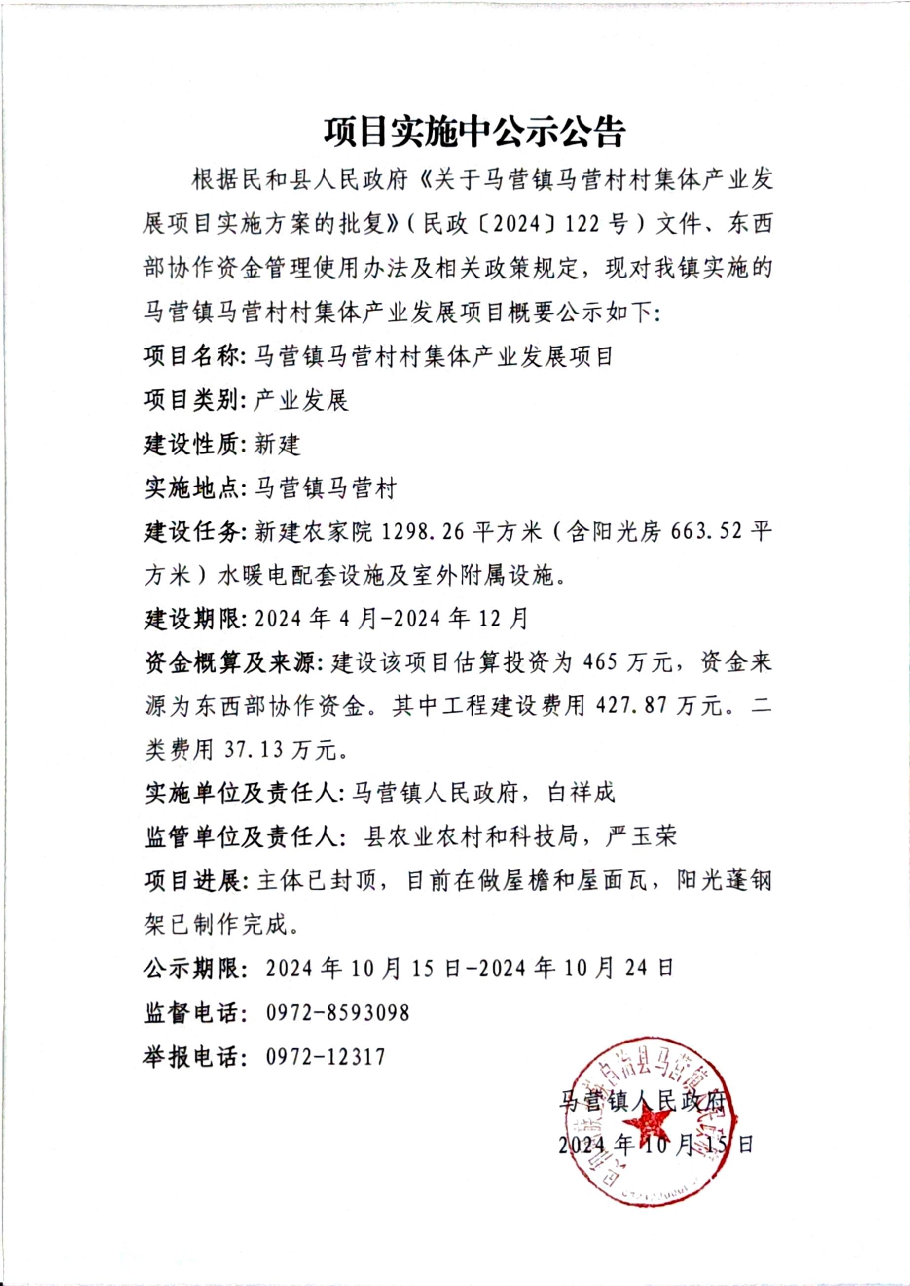马营村村集体产业发展项目中公示