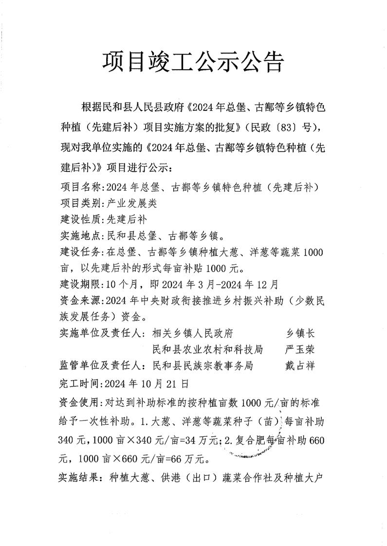 2024年总堡、古鄯等乡镇特色种植(先建后补)项目竣工公示公告