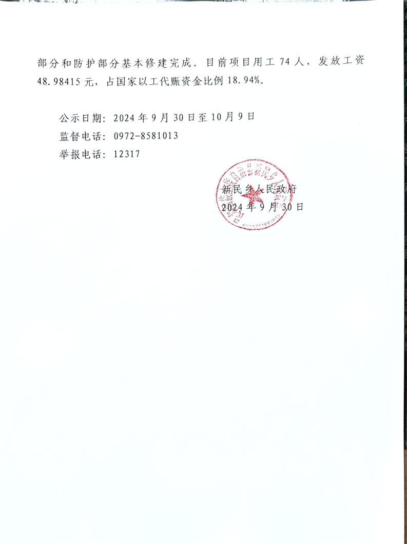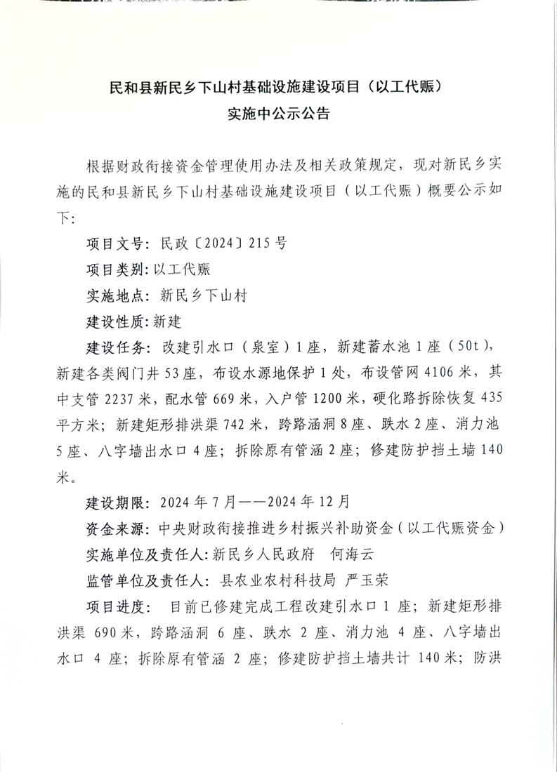 民和县新民乡下山村基础设施建设项目实施中公示公告