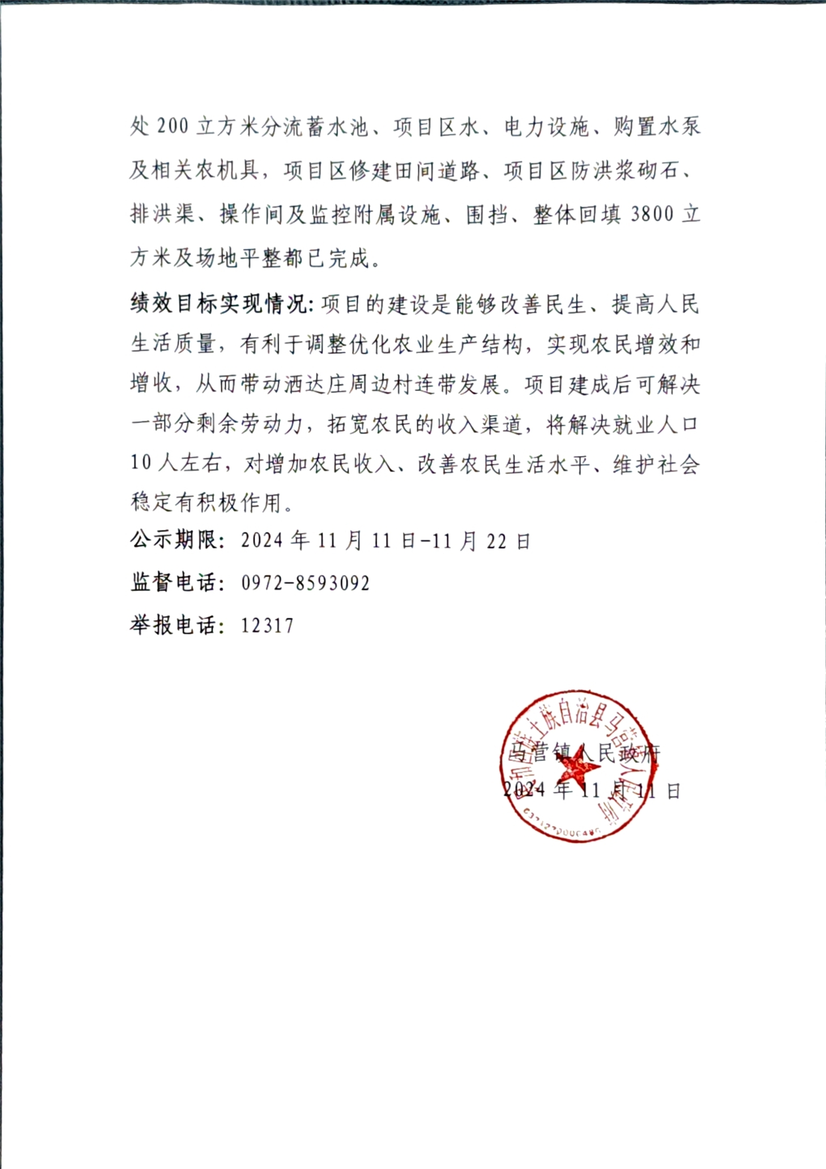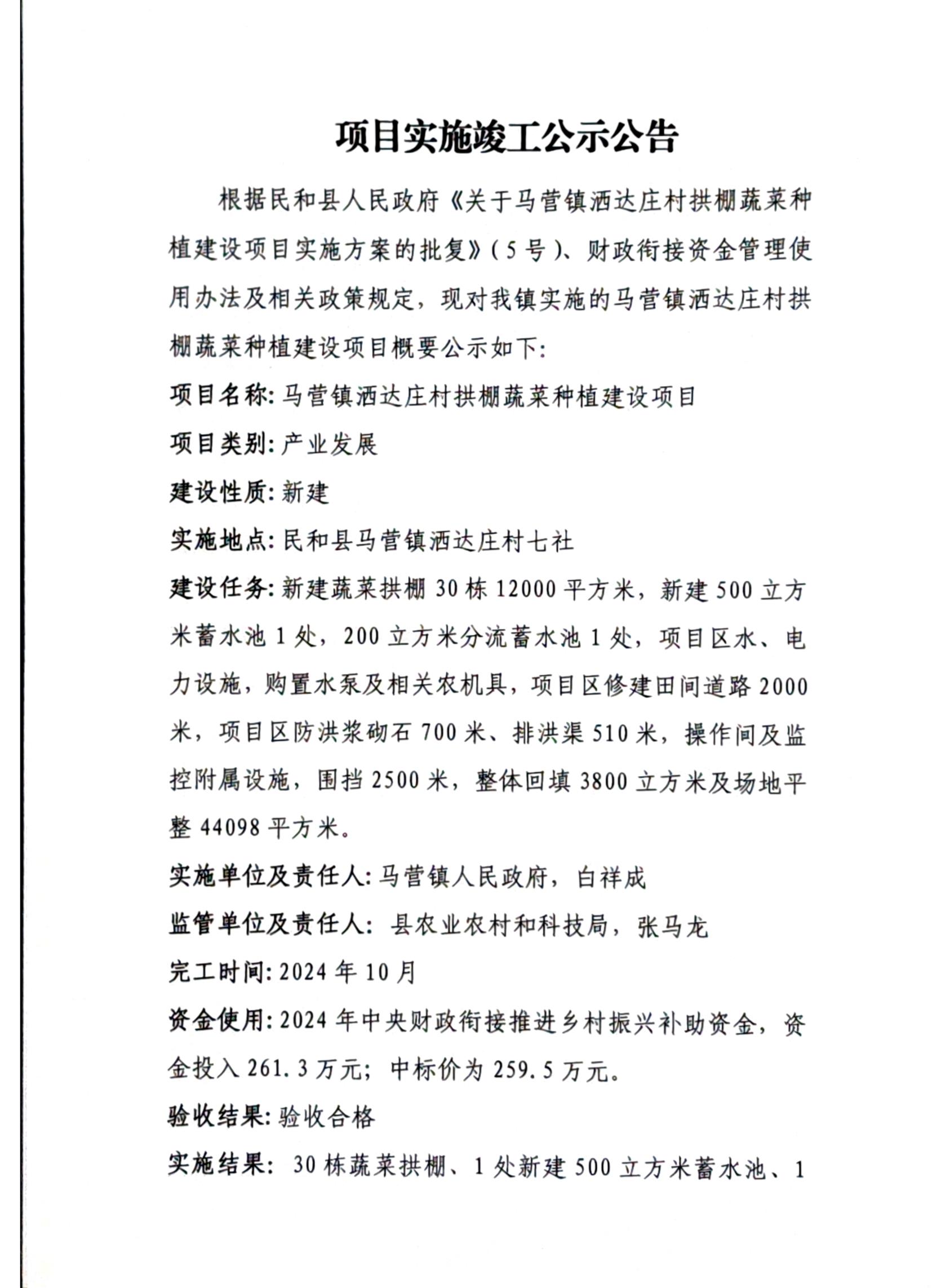 马营镇洒达庄村拱棚蔬菜种植建设项目竣工公示公告