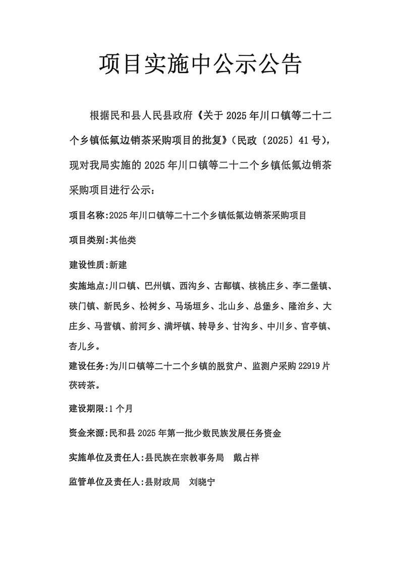 川口镇等二十二个乡镇低氟边销茶采购项目实施中公示