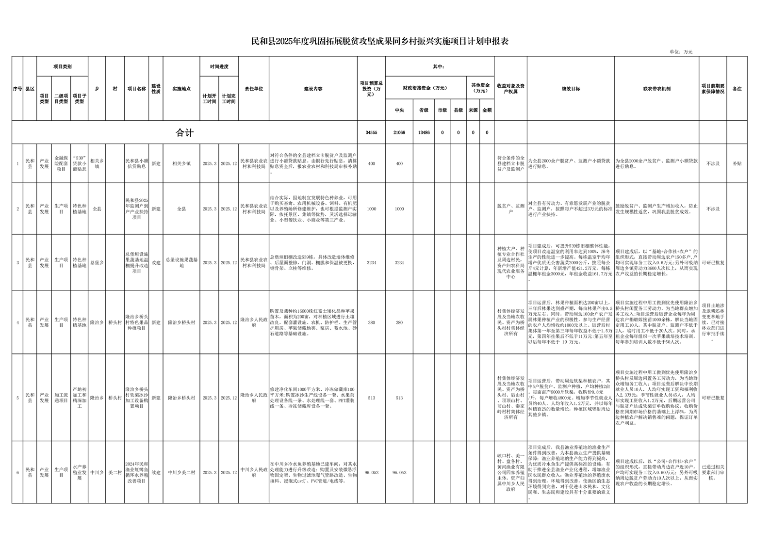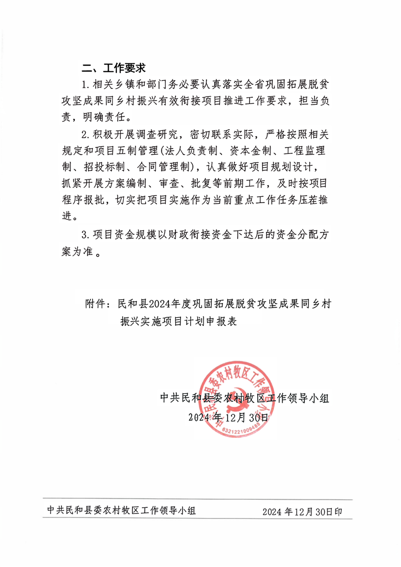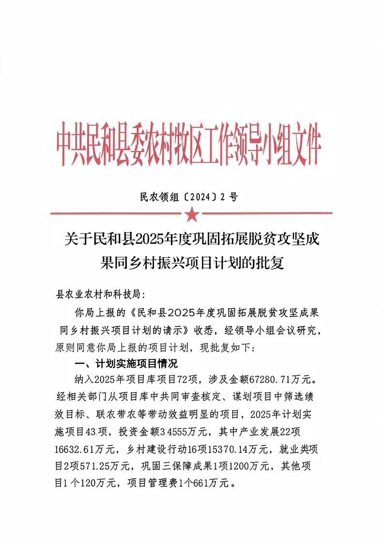 关于民和县2025年度巩固拓展脱贫攻坚成果同乡村振兴项目计划的批复