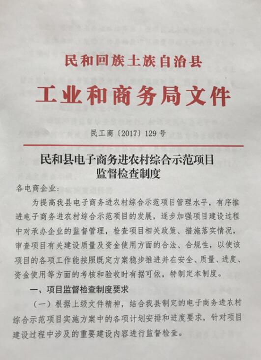 欢迎广大群众对民和县电子商务进农村综合示范项目实施情况进行监督。