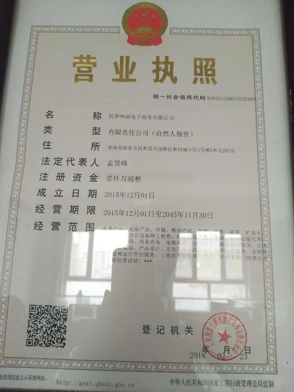 民和和润电子商务有限公司成立于2015年12月1日,我公司专业从事农畜产品、民俗产品、粮油产品、生鲜水果蔬菜、能源产品等网上销售以及商品包装、货物仓储、企业管理咨询商务咨询、公关活动组织策划、会议会展服务、文化艺术交流等活动。公司位于素有“青海东大门”之称的民和县,公司自成立以来,致力于县域智慧旅游发展,重金打造了“县行者”智慧旅游平台。公司秉承勇于开拓、不断创新的企业精神,以专业的运营团队支撑智慧旅游平台飞速发展。截至目前,该平台已经服务县域商户近1600家,其中涵盖餐饮,酒店,休闲娱乐等诸多领域;累积用户数量2万多人。公司本着扎根民和、放眼全国的经营理念,用积极发展的态度,引领县域智慧旅游持续理性发展。
