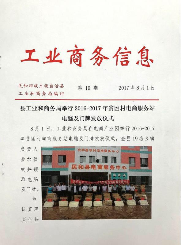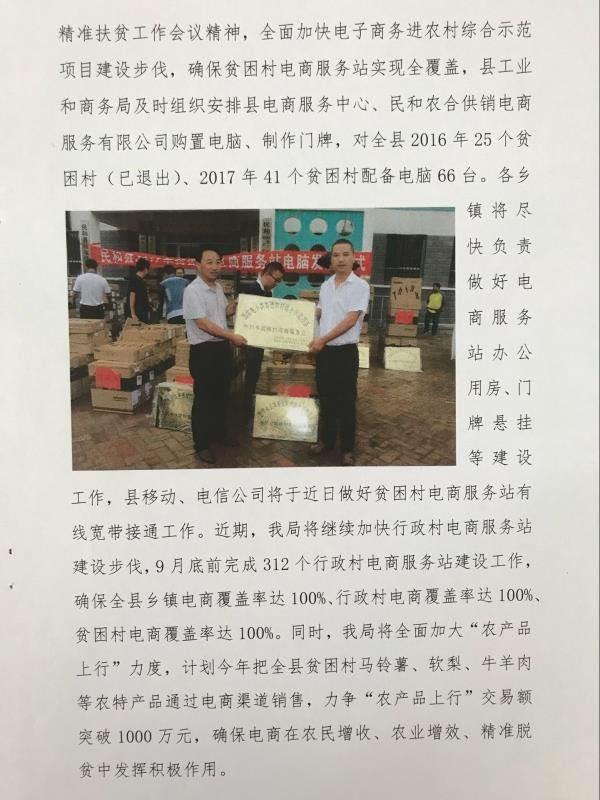 县工业和商务举行2016-2017年贫困村电商服务站电脑及门牌发放仪式