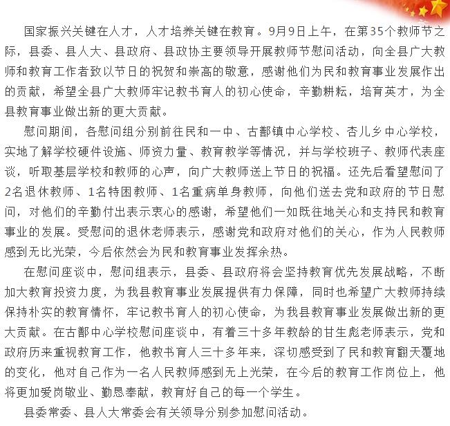 民和县开展教师节走访慰问活动