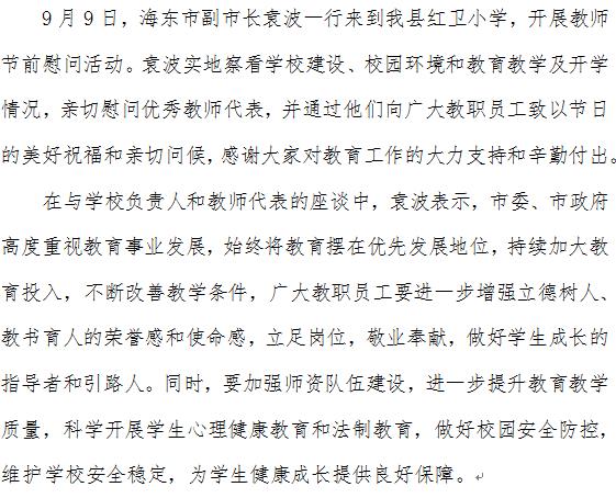 海东市副市长袁波慰问我县教师代表