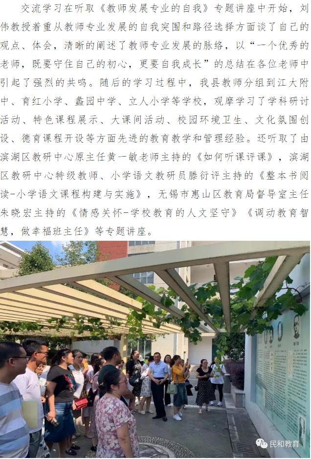 以学习促成长 以交流促发展 民和县教师赴无锡市滨湖区进行交流学习