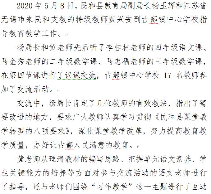 教育局副局长杨玉辉、特级教师黄兴安到古鄯镇中心学校指导教学工作