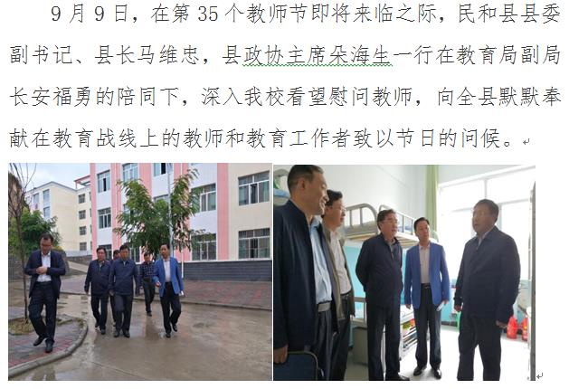 县委副书记、县长马维忠、县政协主席朵海生一行到我校慰问教师