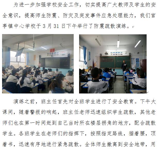 官亭中心学校开展防震疏散演练活动