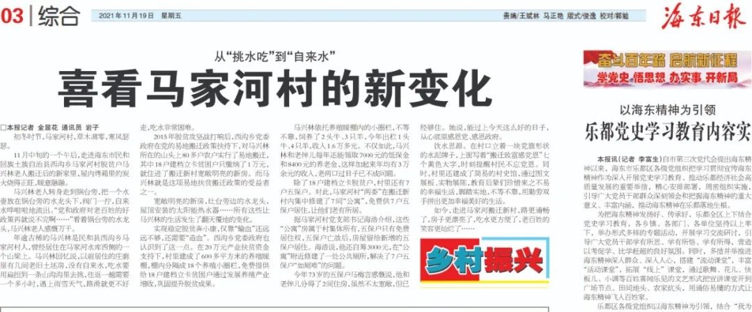 如今,走进马家河搬迁新村,路更通畅了,房子更漂亮了,吃水更方便了,老百姓的笑容更灿烂了……