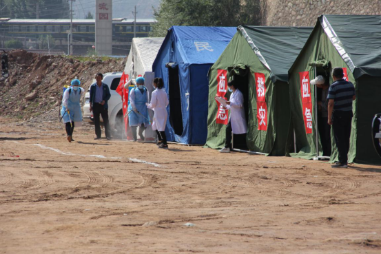 (疾控中心对受灾群众安置区进行防疫消杀)
