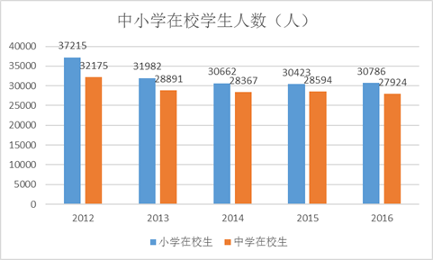 全县拥有小学68所,教学点157个,在校学生30786人;中学33所,在校学生23486人。职业技术学校1所,在校职高生4411人,特殊教育学校1所,在校学生27人。幼儿园33所,小学附设的学前班、幼儿园人数12370人。小学入学率100 %,初中阶段入学率为97.5%,高中阶段毛入学率87.5 %。
