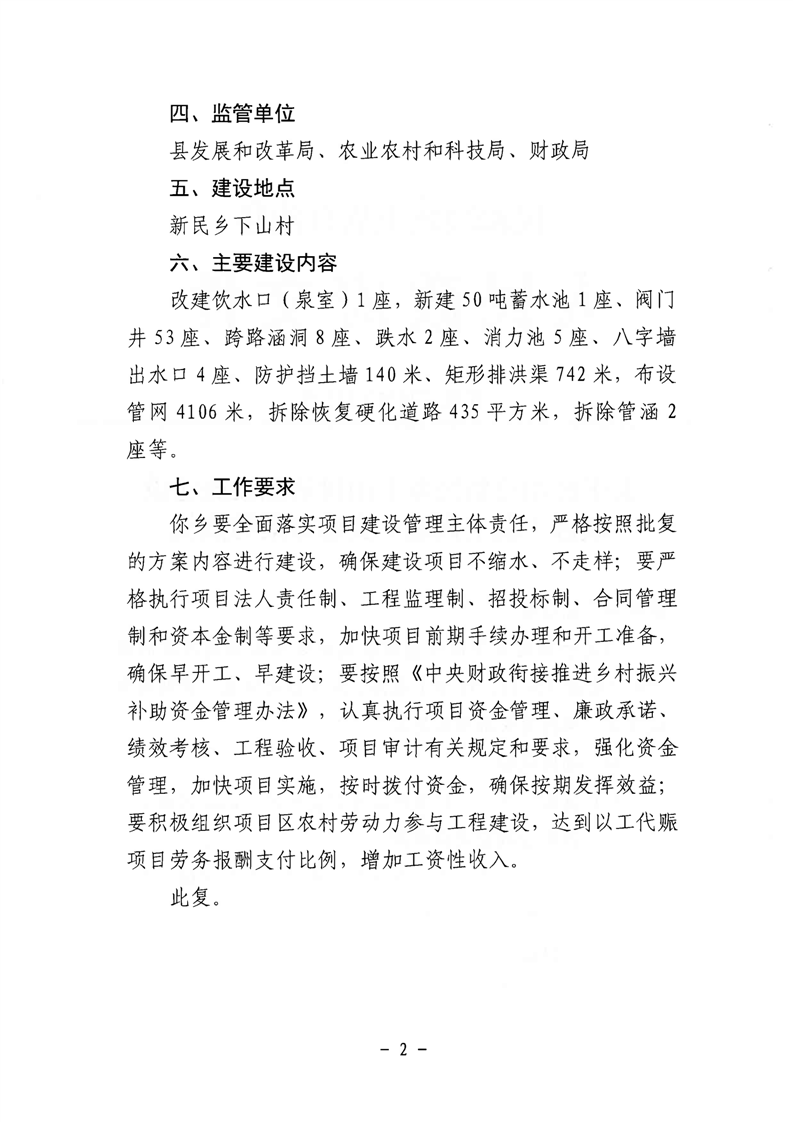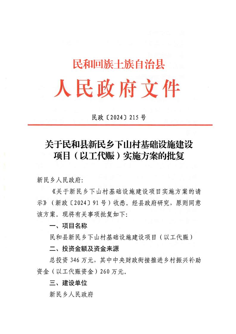 关于民和县新民乡下山村基础设施建设项目(以工代赈)实施方案的批复