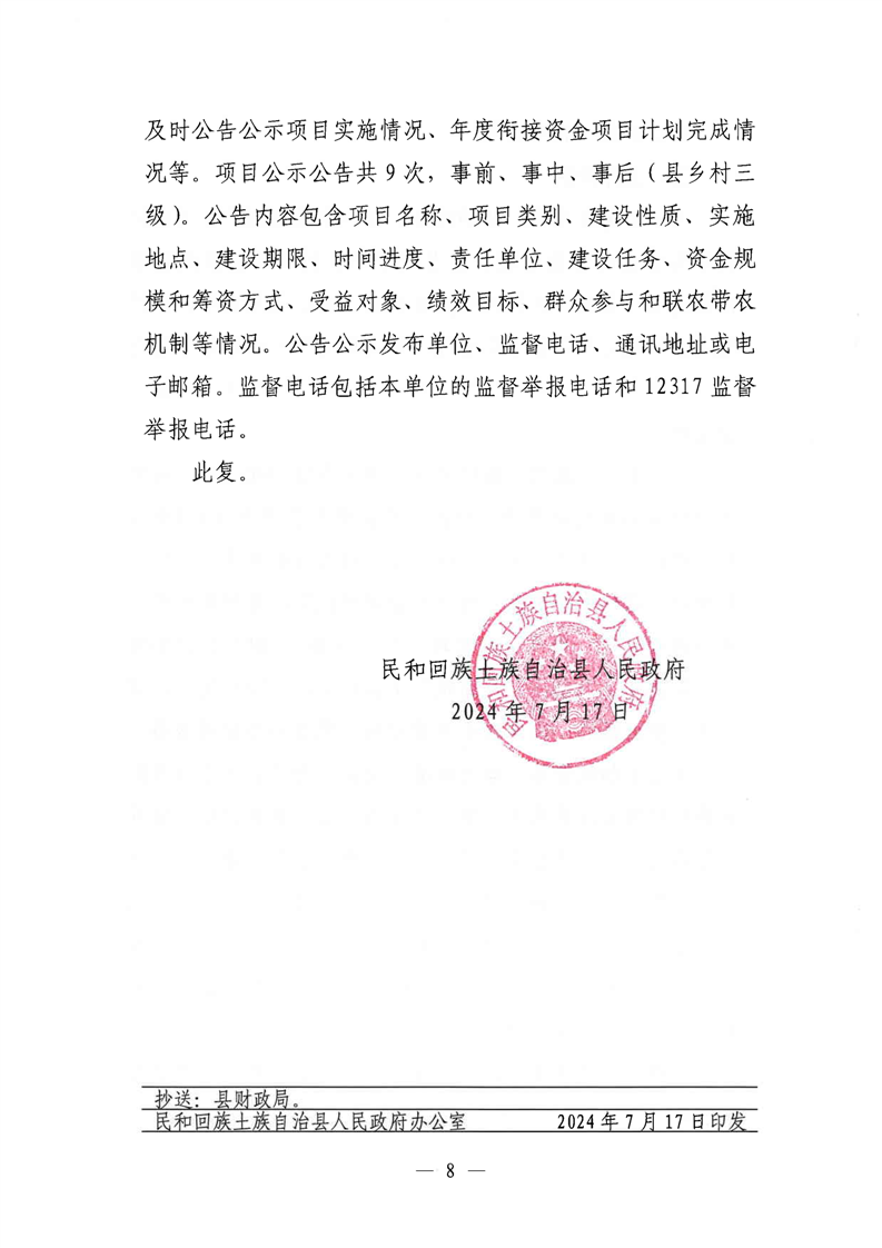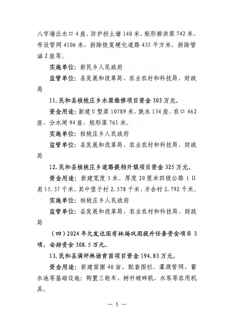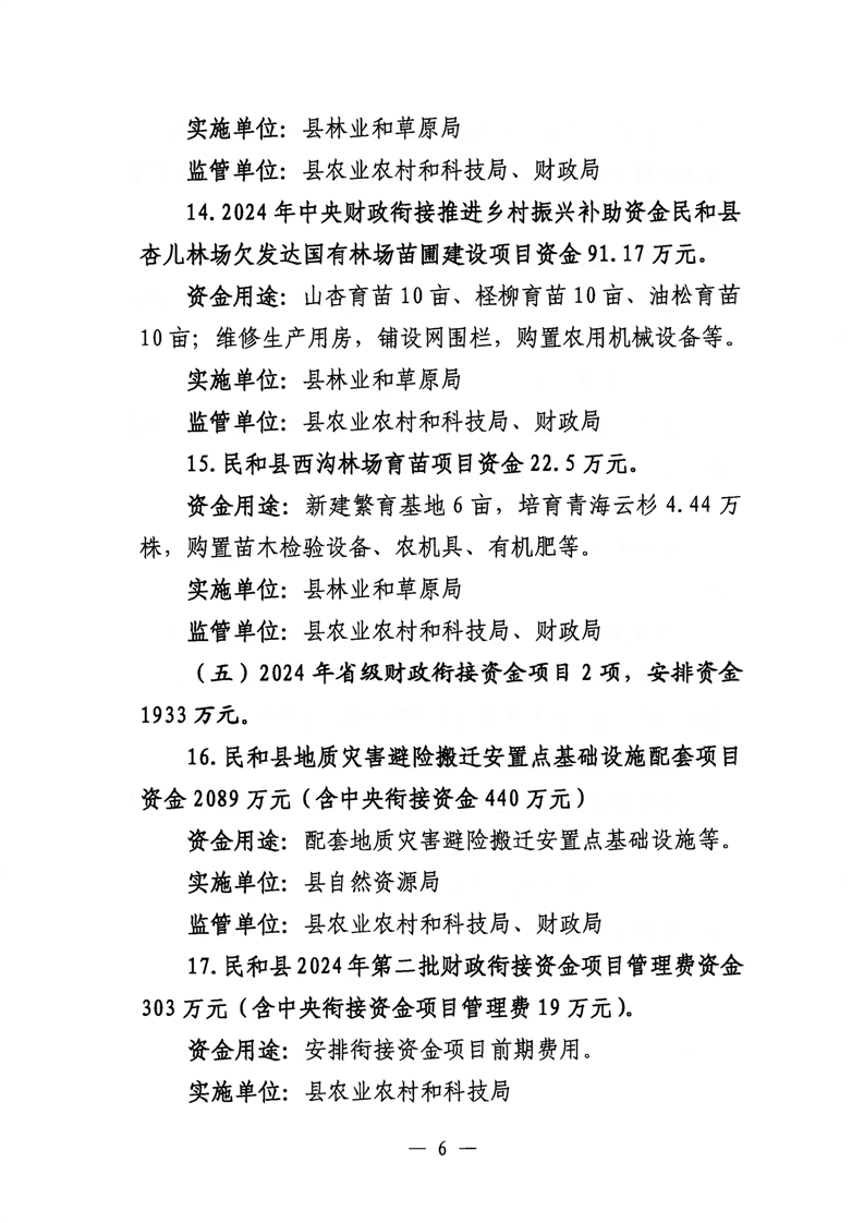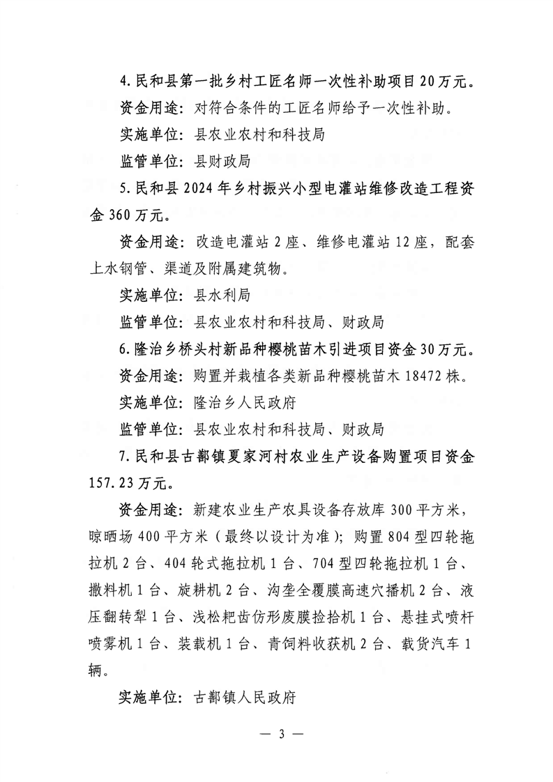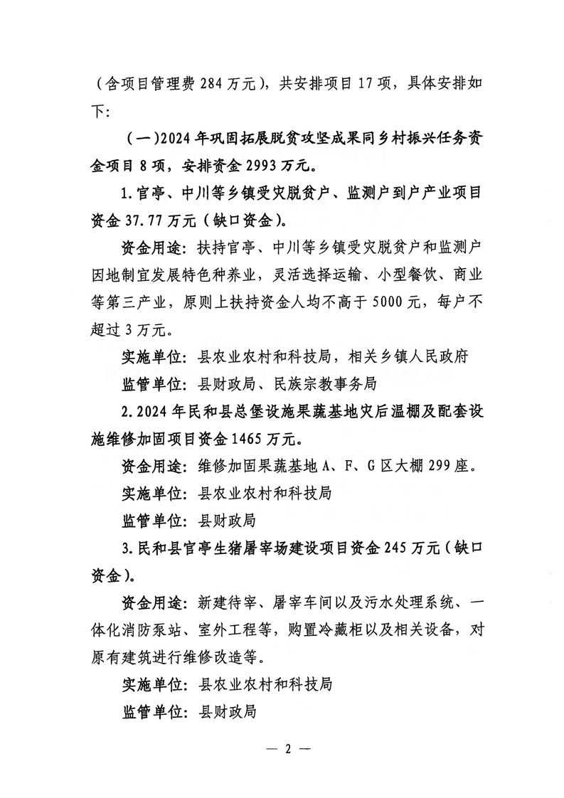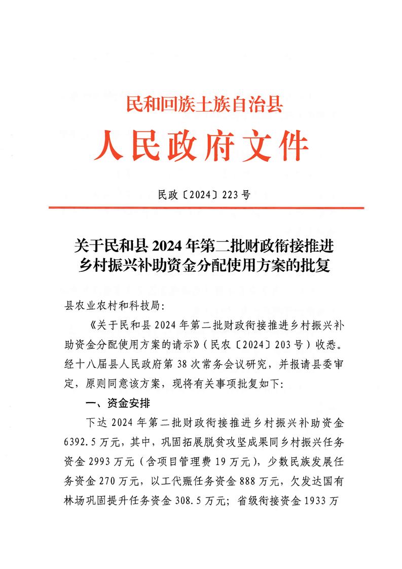 民和县2024年第二批财政衔接推进乡村振兴补助资金分配使用方案的批复