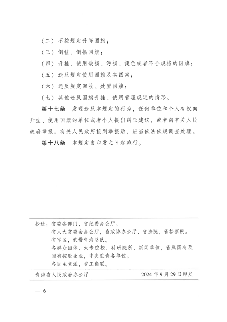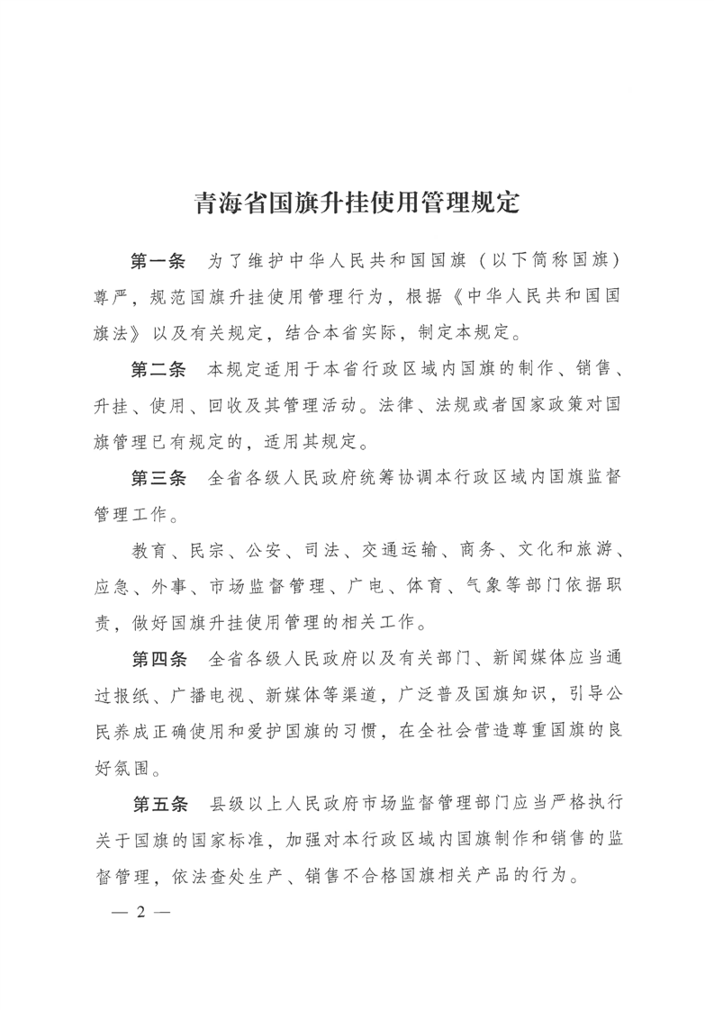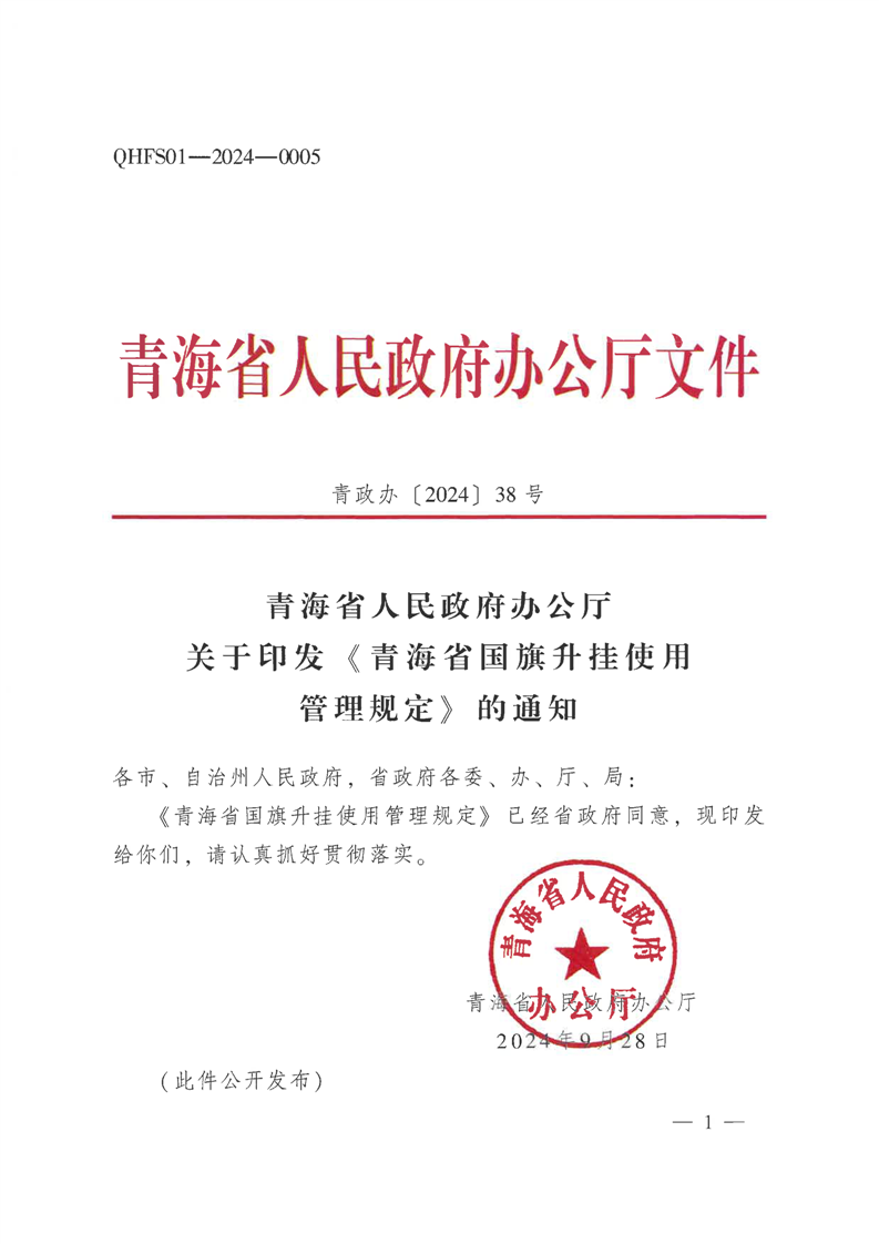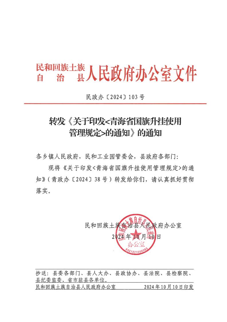 转发《关于印发青海省国旗升挂使用管理规定的通知》的通知