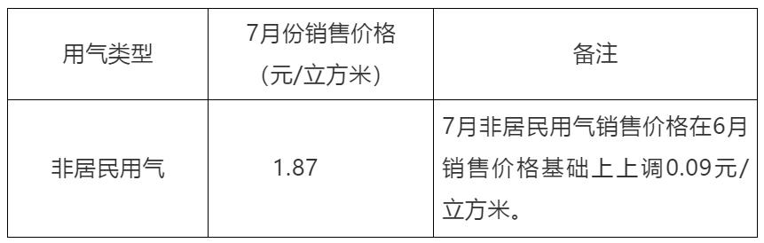 根据2019年市政府第49次常务会议审议议题、海东市发展和改革委员会《关于天然气销售价格有关事项的通知》(东发改价格〔2020〕424号)中有关实行天然气门站价格与销售价格联动的规定及我公司与中石油天然气股份有限公司青海分公司签订的《2021-2022年天然气购销合同》,现将2021年7月销售价格有关事项公告如下: