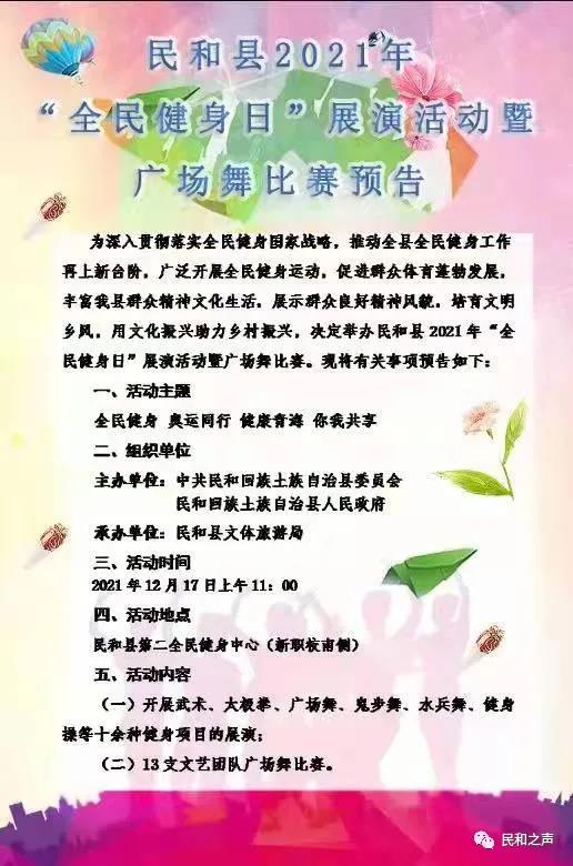 【活动预告】民和县2021年“全民健身日”展演活动暨广场舞比赛预告