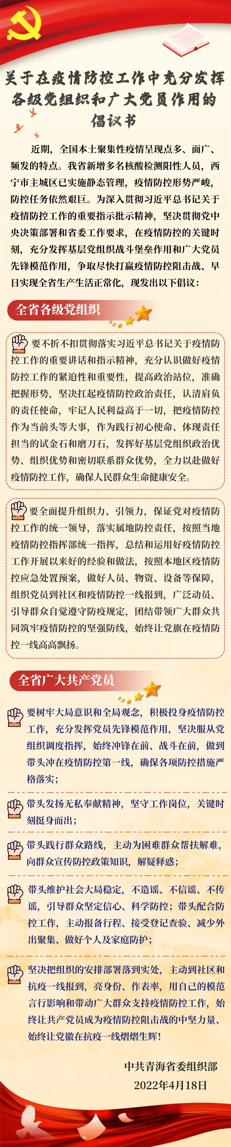关于在疫情防控工作中充分发挥各级党组织和广大党员作用的倡议书