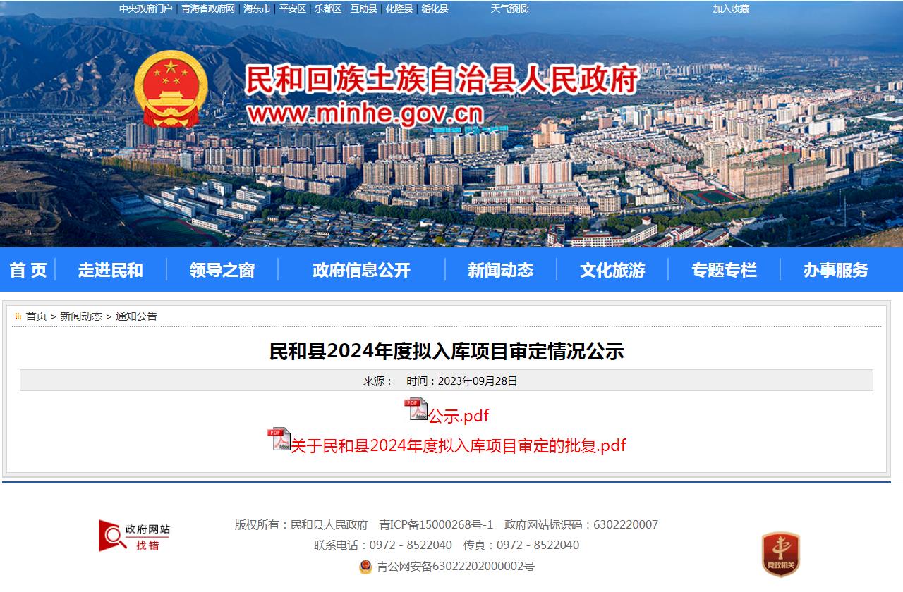 关于民和县2024年度拟入库项目审定的批复.pdf