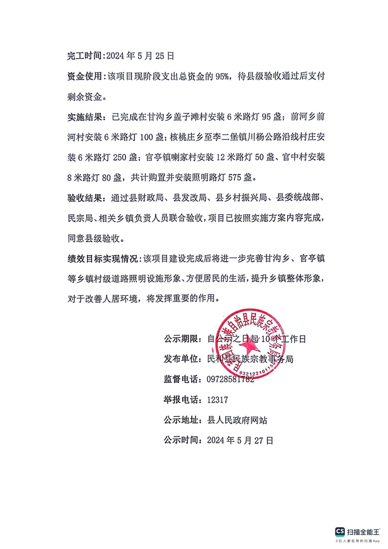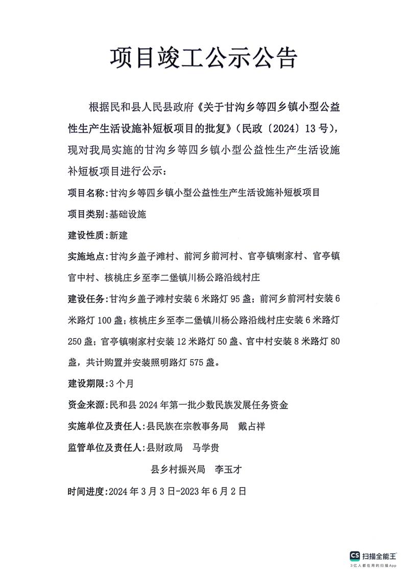 甘沟乡等四乡镇小型公益性生产生活设施补短板项目竣工公示公告