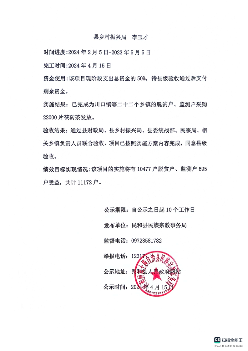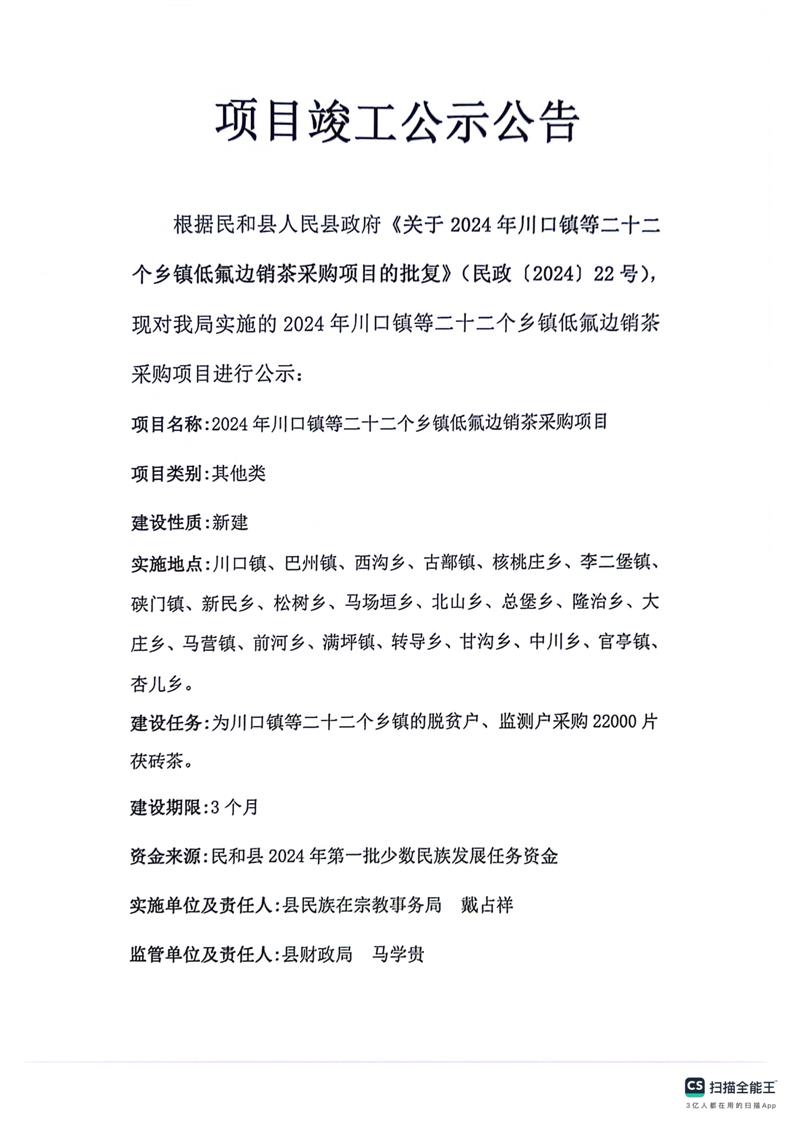 2024年川口镇等二十二个乡镇低氟边销茶采购项目竣工公示公告
