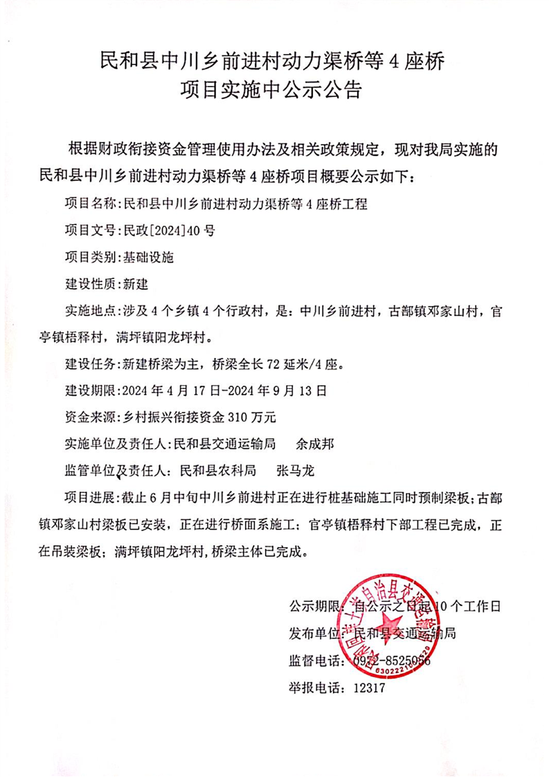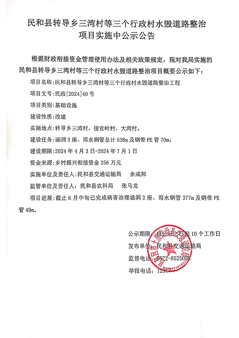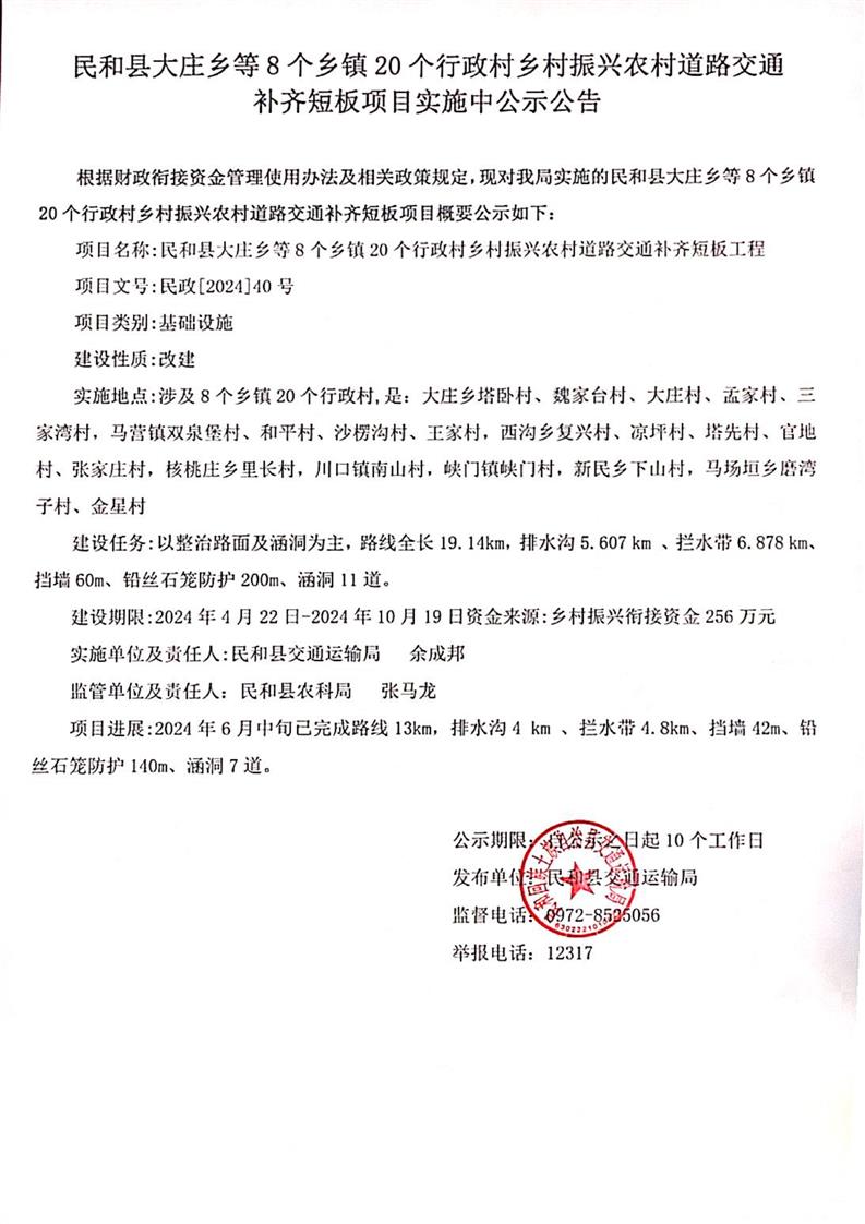 民和县2024年乡村振兴交通补齐短板项目实施中公示