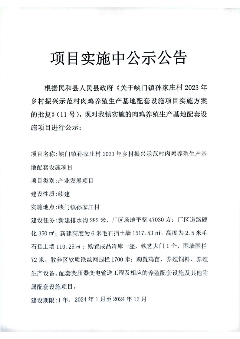 峡门镇孙家庄村2023年乡村振兴示范村肉鸡养殖生产基地配套设施项目