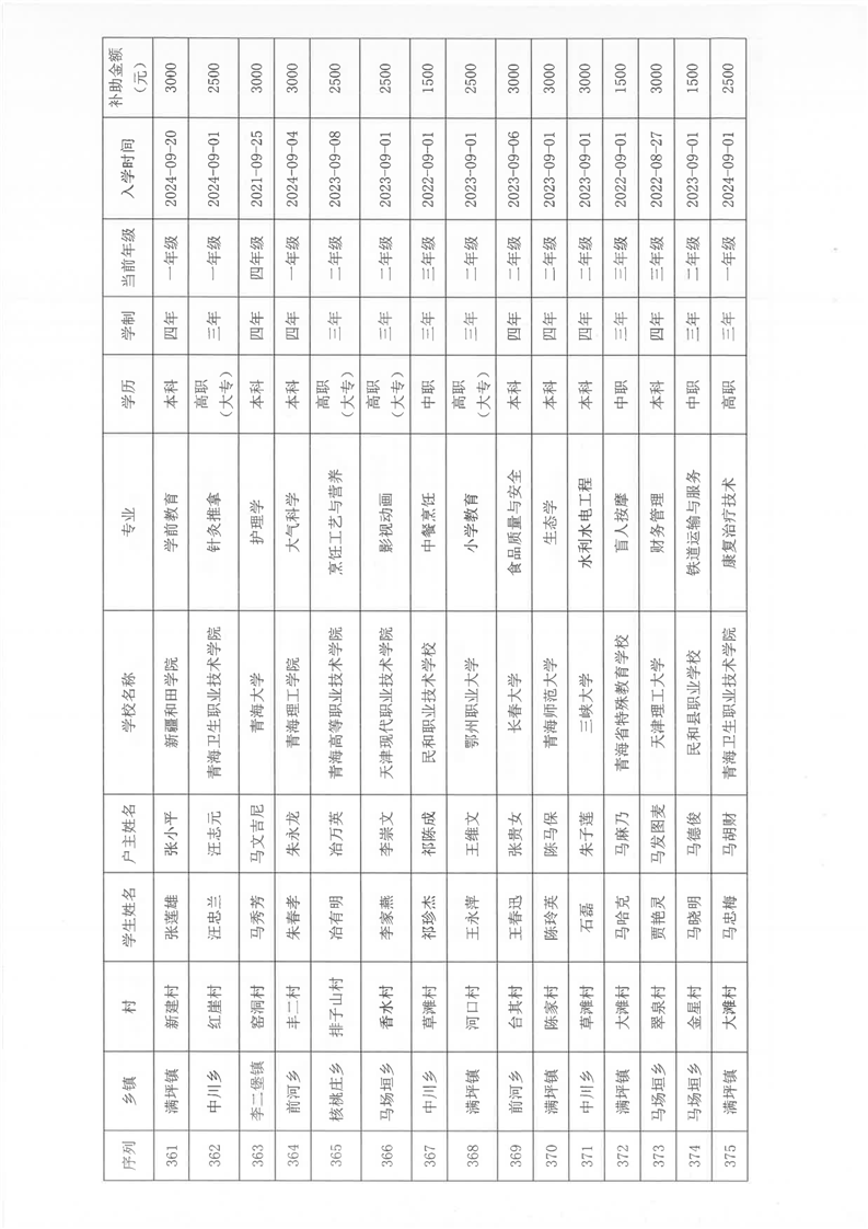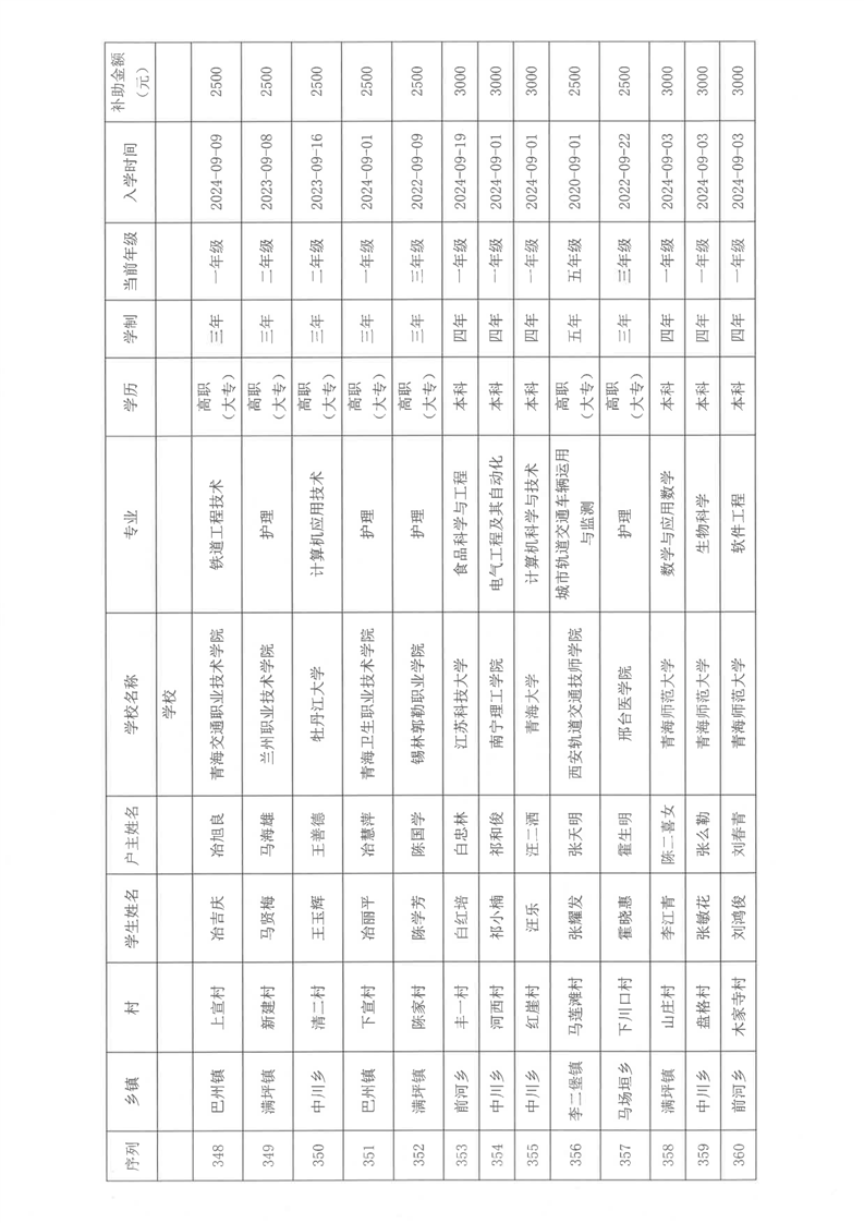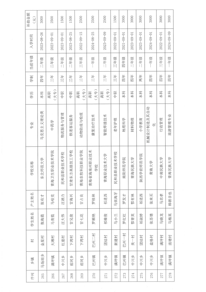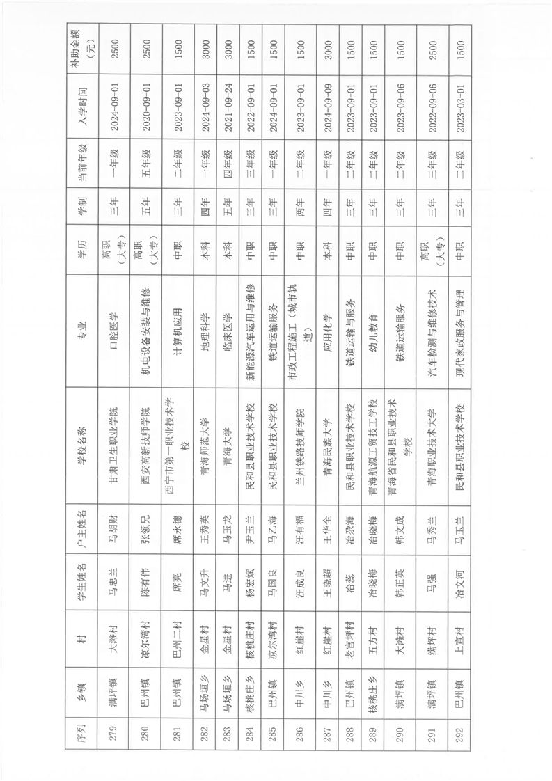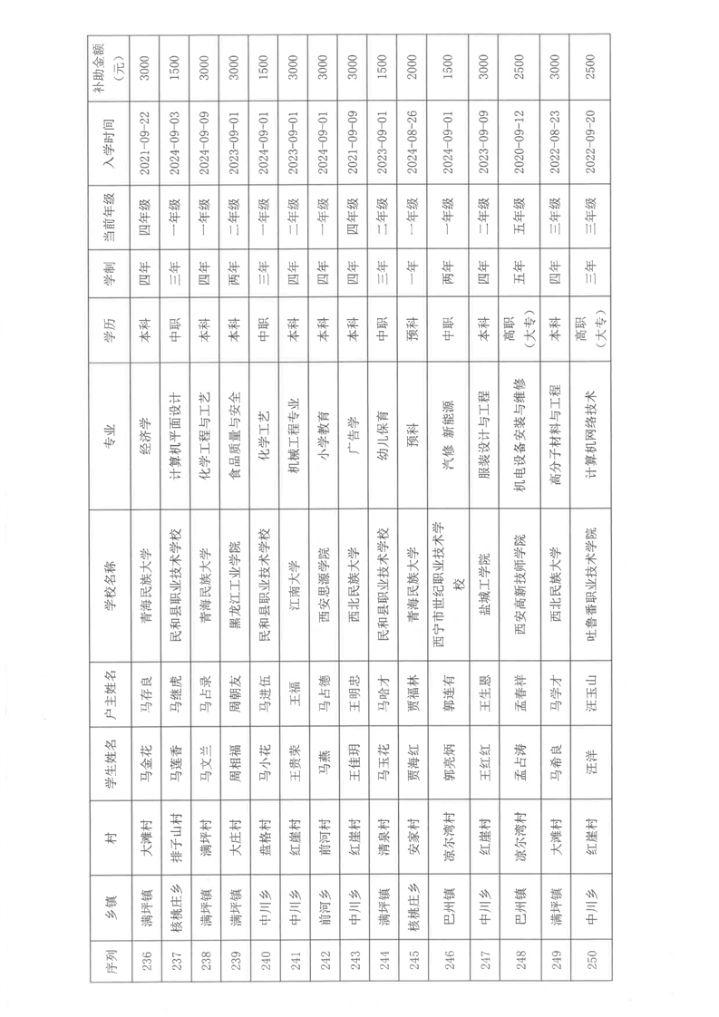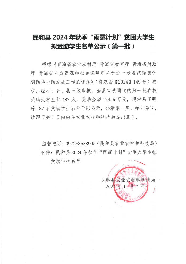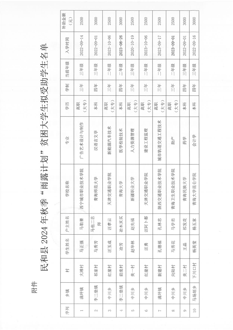 民和县2024年秋季“雨露计划”贫困大学生拟受助学生名单公示(第一批)
