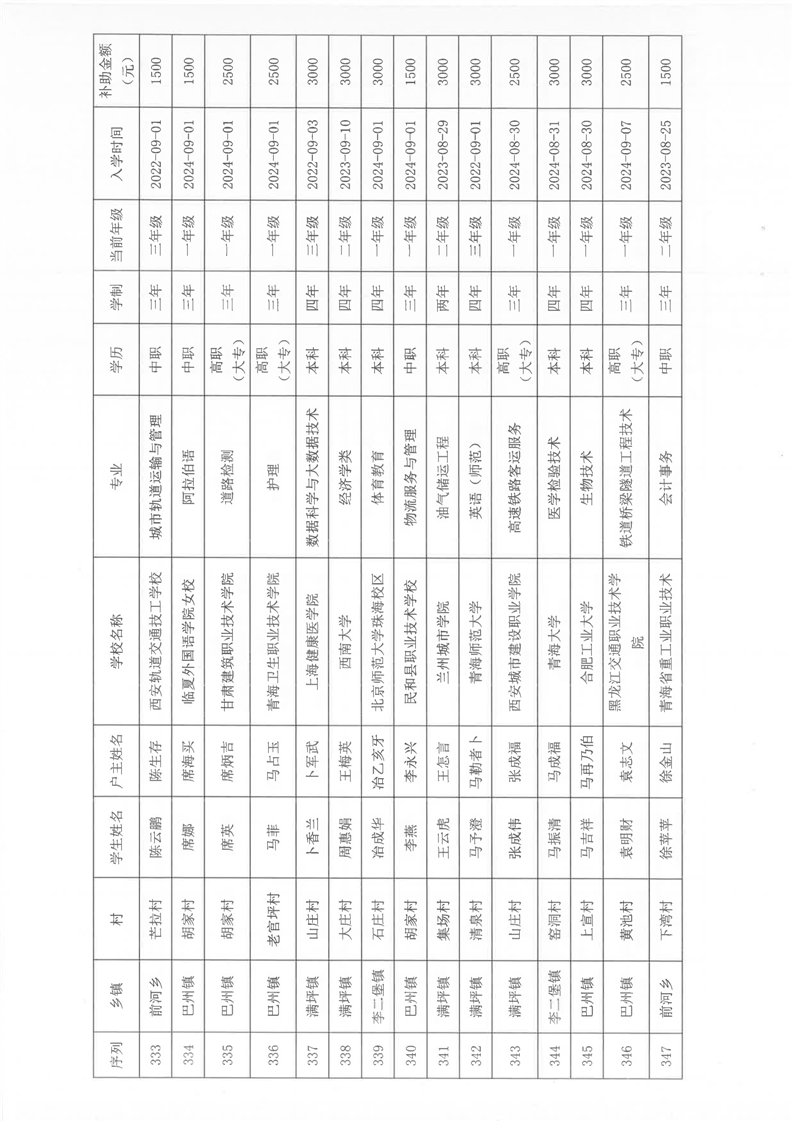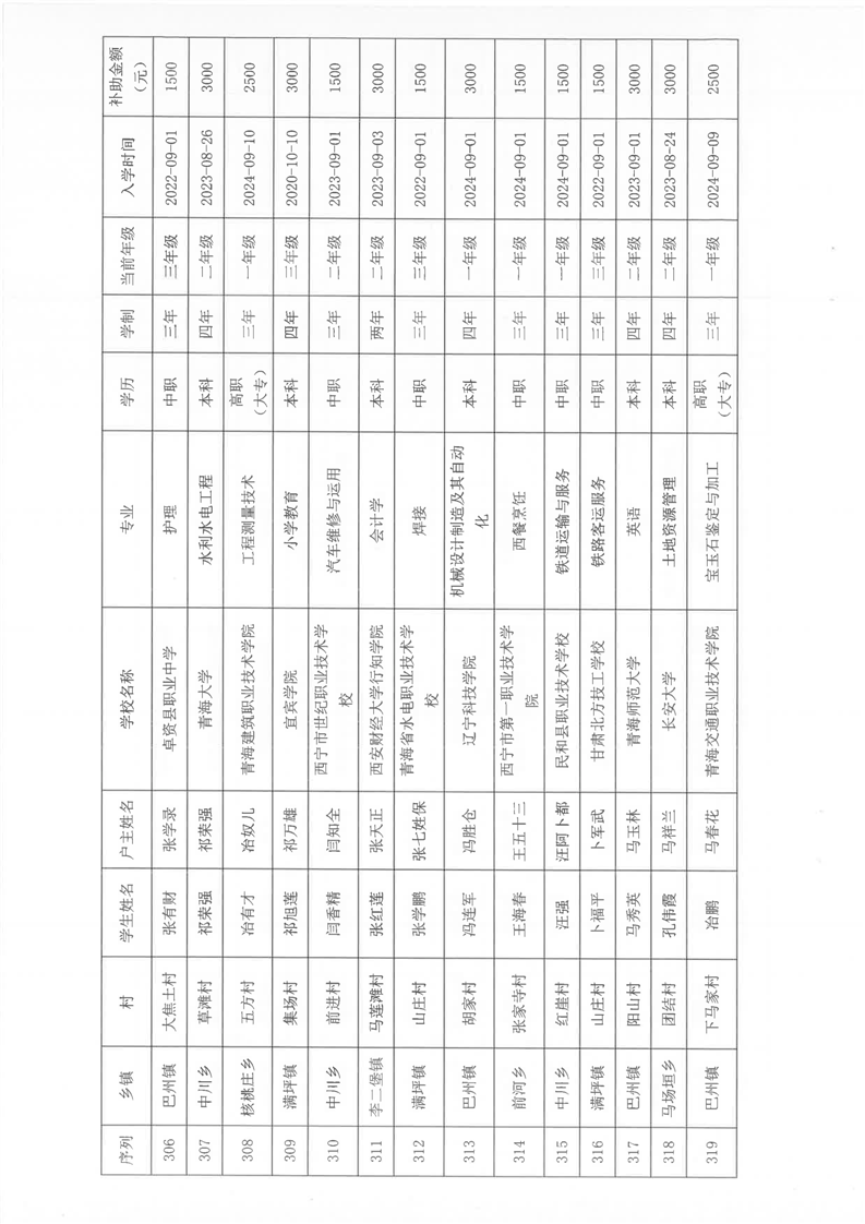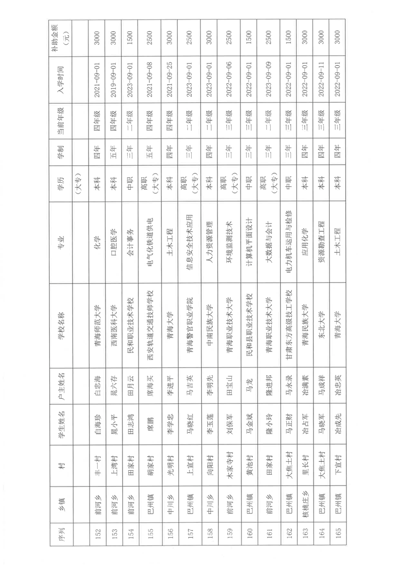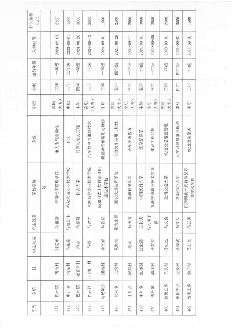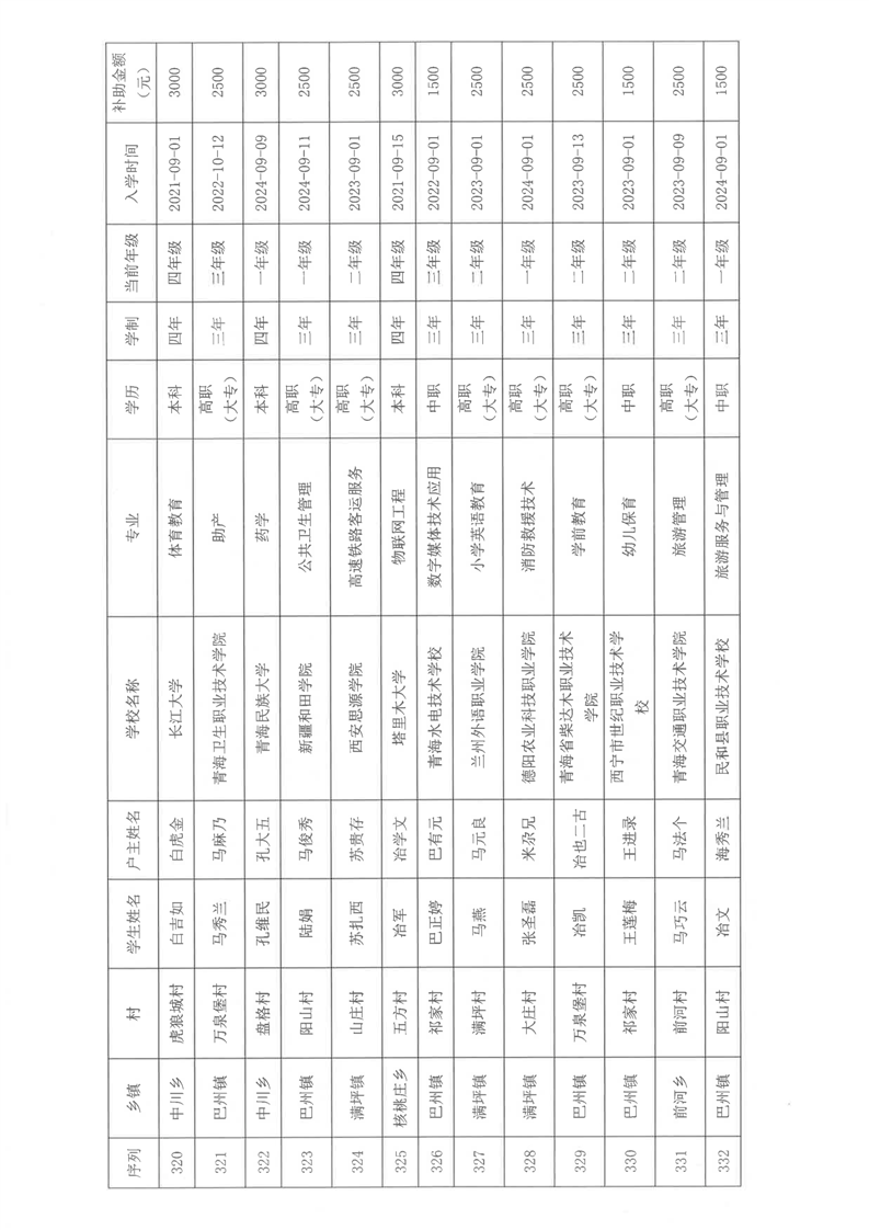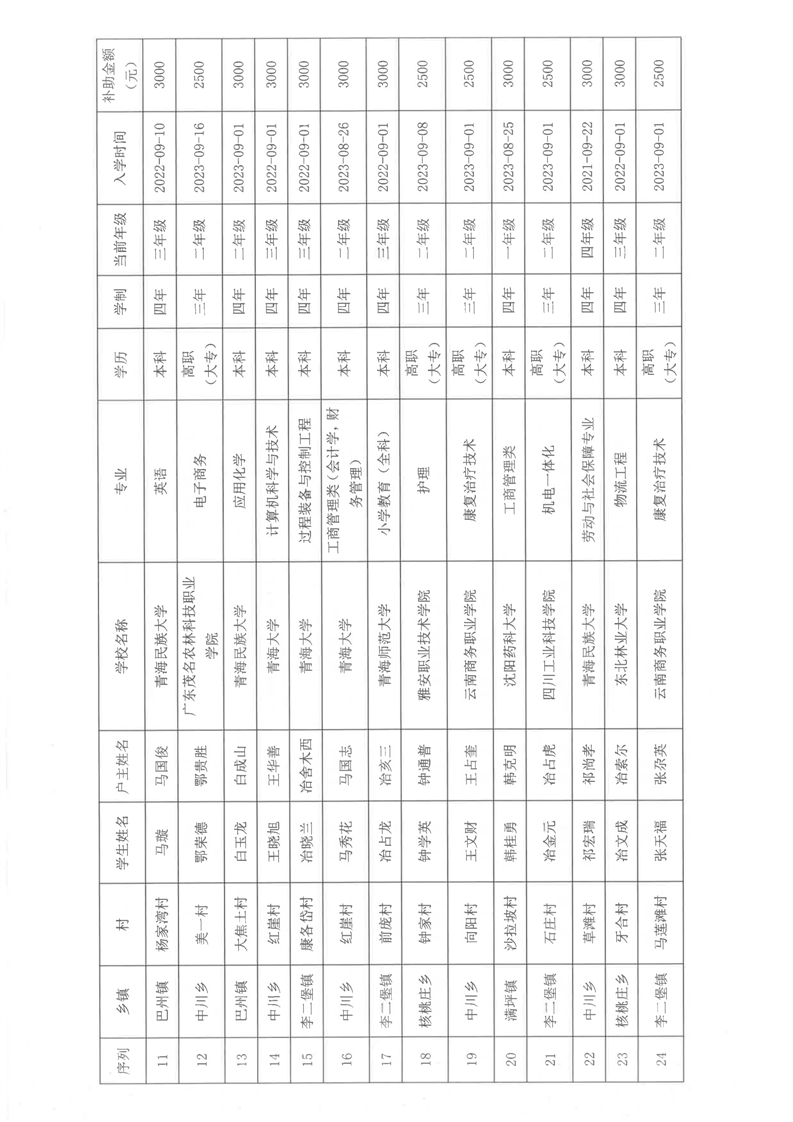 民和县2024年秋季“雨露计划”贫困大学生拟受助学生名单公示(第一批)