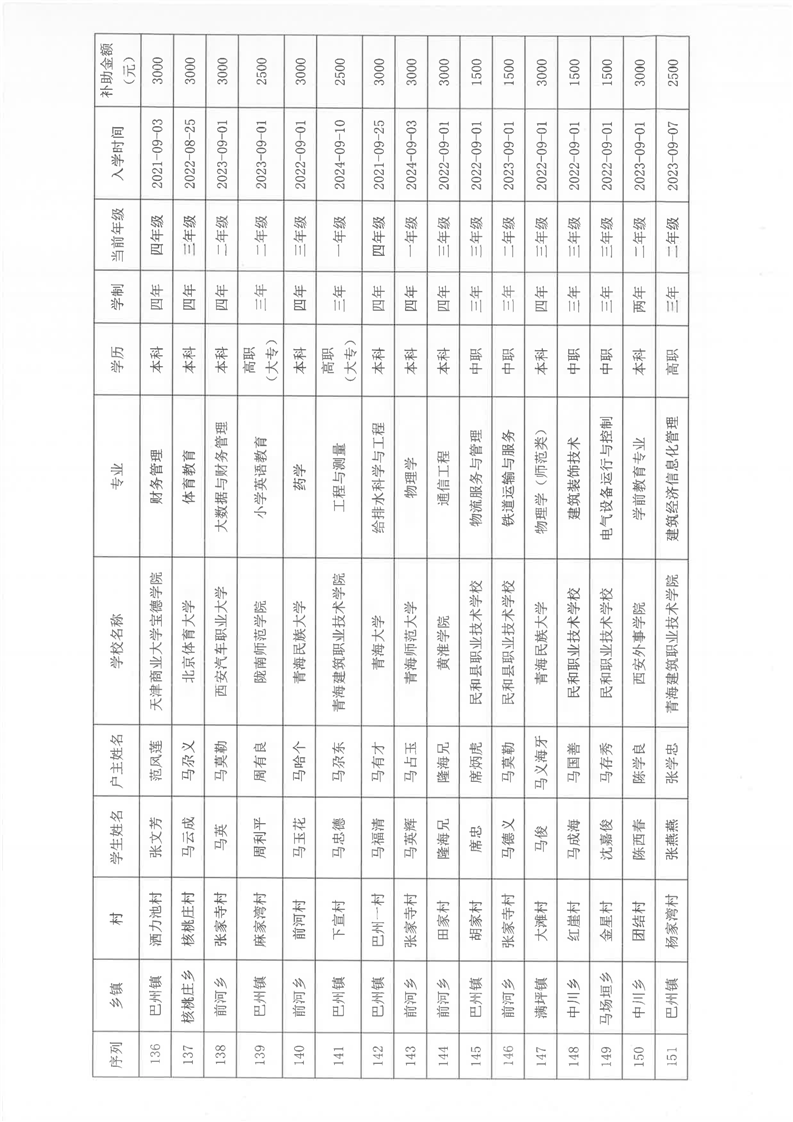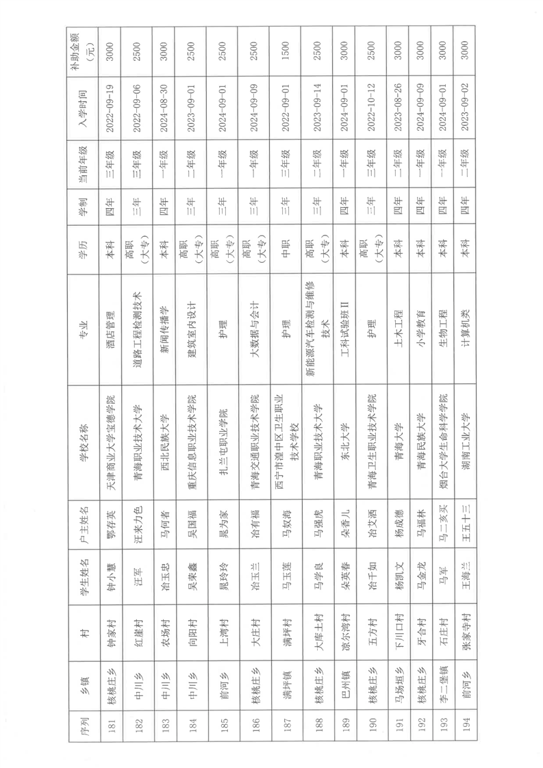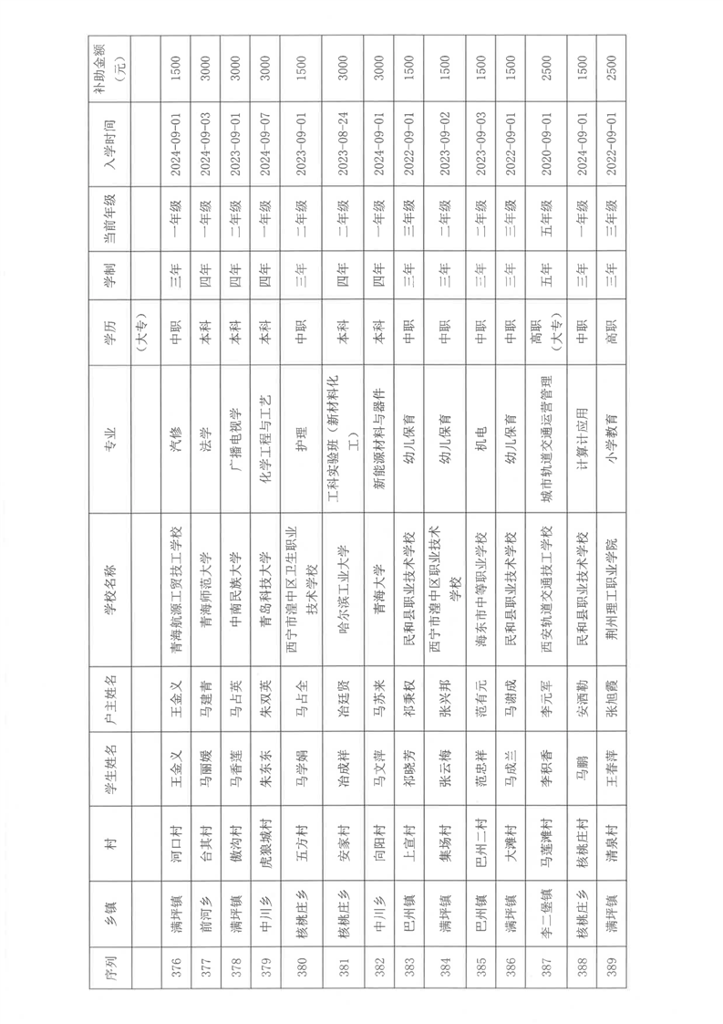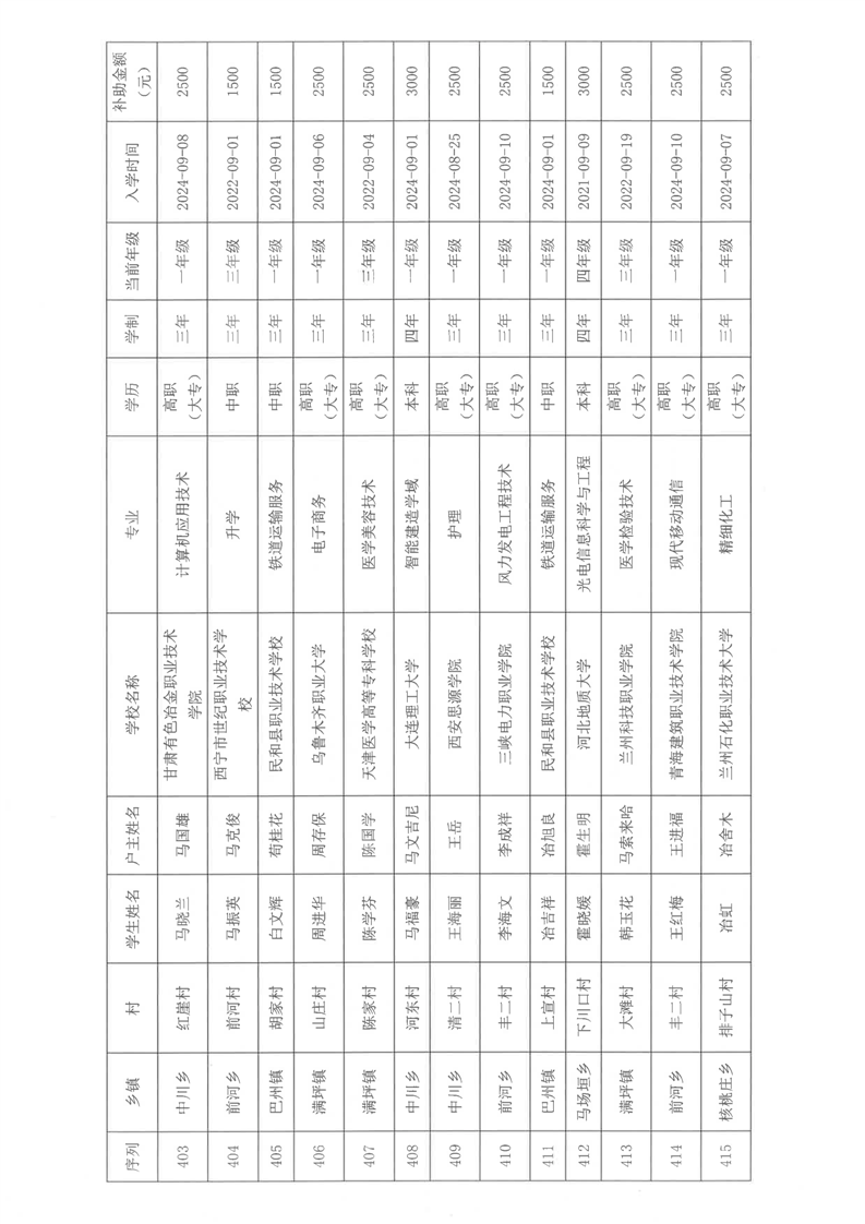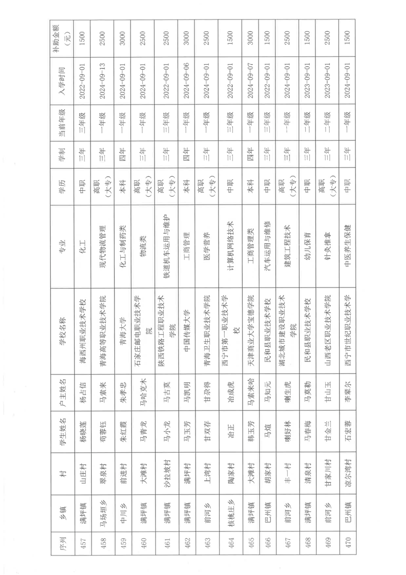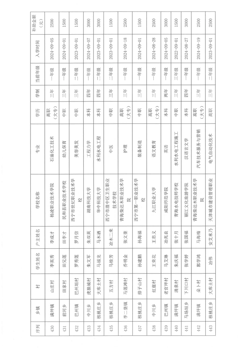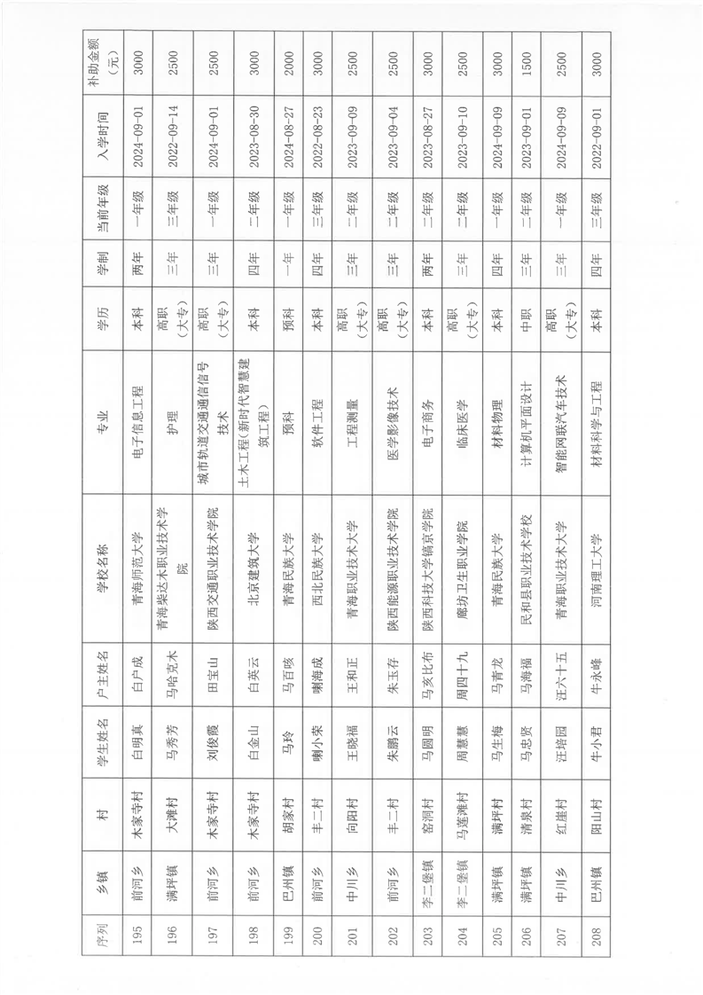 民和县2024年秋季“雨露计划”贫困大学生拟受助学生名单公示(第一批)