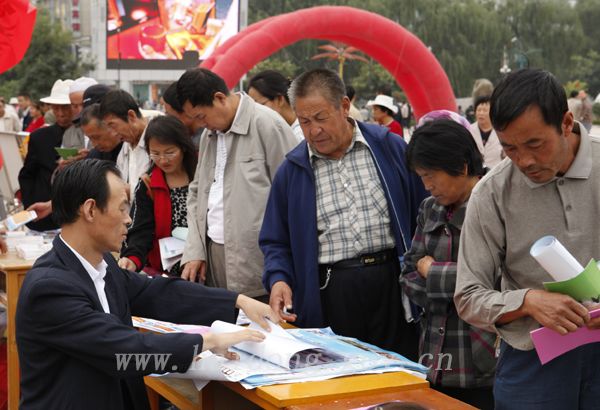 地区各成员单位在平安广场设立的展台、科技咨询台和服务台,解答了群众提出的问题。地、县医疗机构热情地为群众提供了义诊等服务。