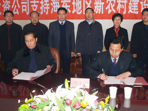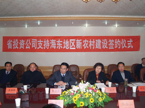 座谈会上,省投资公司向我区捐赠了100万元新农村建设资金,并与行署签订了《省投资公司支持海东地区新农村建设协议书》,双方协定:从2008年起,至2017年10年内,省投资公司每年向海东投资100万元,共计1000万元,支持资金于每年第一季度内到位。主要用于特色农业、产业化经营、农民增收项目和农村基础条件改善。