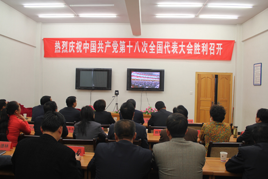 海东地委委员、民和县委书记赵雄,县委副书记、县长沙德林,县人大常委会主任靳雪宏等县级领导在政府五楼视频会议室集体聆听收看党的十八大开幕盛况,各单位、各乡镇、各企业分别以党组(党委)支部为单位,组织干部职工集中收看。