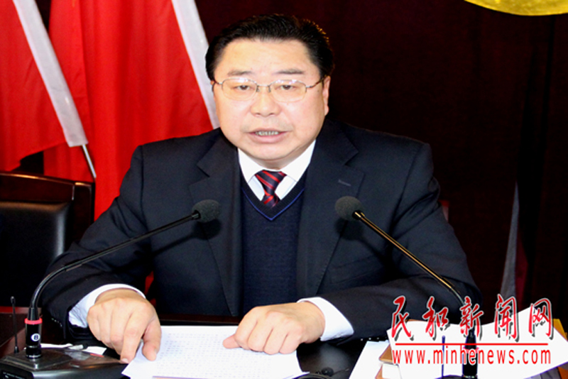 县委副书记、县长沙德林代表县委全面总结2012年工作 ,安排部署2013年工作