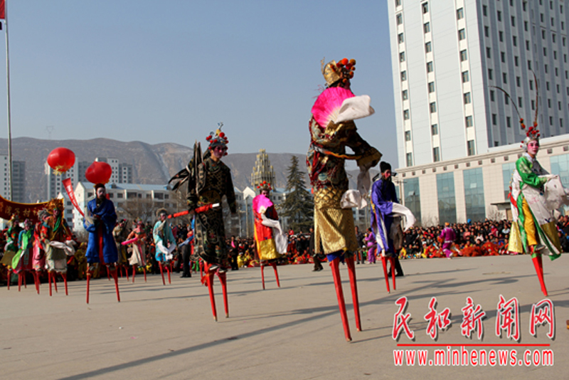 2月23日(农历正月十四),民和回族土族自治县在县政府广场隆重举行社火汇演活动,邀请12支社火队前来尽情表演,把全县人民过大年、庆新春的喜庆和欢乐再一次推向高潮。