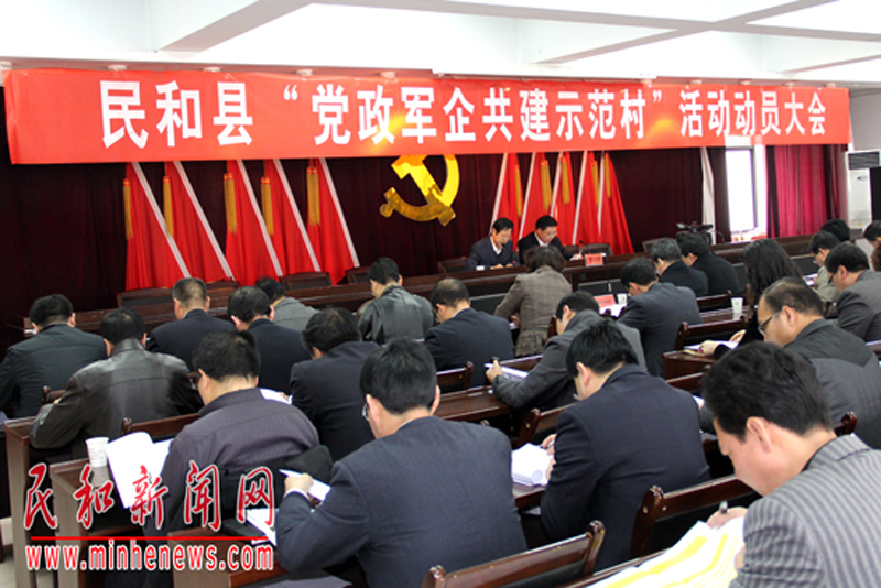 2月26日,民和回族土族自治县召开“党政军企共建示范村”活动动员会,对2013年民和县五个“党政军企共建示范村”活动进行安排部署。县委常委、组织部部长包钧泰主持会议并宣读实施方案,县委副书记贾志军作动员讲话。