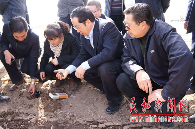 在古鄯镇全膜双垄栽培技术推广基地,张光荣深入田间,俯身查看土壤墒情和播种机播种情况,详细了解全膜双垄栽培技术和普通种植之间的区别,并在现场就两种土壤的湿度进行测试对比。张光荣指出,近几年,民和县为彻底改变浅山地区传统的耕作模式,为促进农民增收、农业增效引进了全膜覆盖双垄栽培技术,较好地解决了干旱少雨、干旱半干旱地区农业生产上的春季抗旱保苗、粮食产量低而不稳的问题,是立足县情、结合实际,发展干旱地区粮食生产、农民增收的一项重大技术措施,有力地促进了粮食增产、农业增效、农民增收。