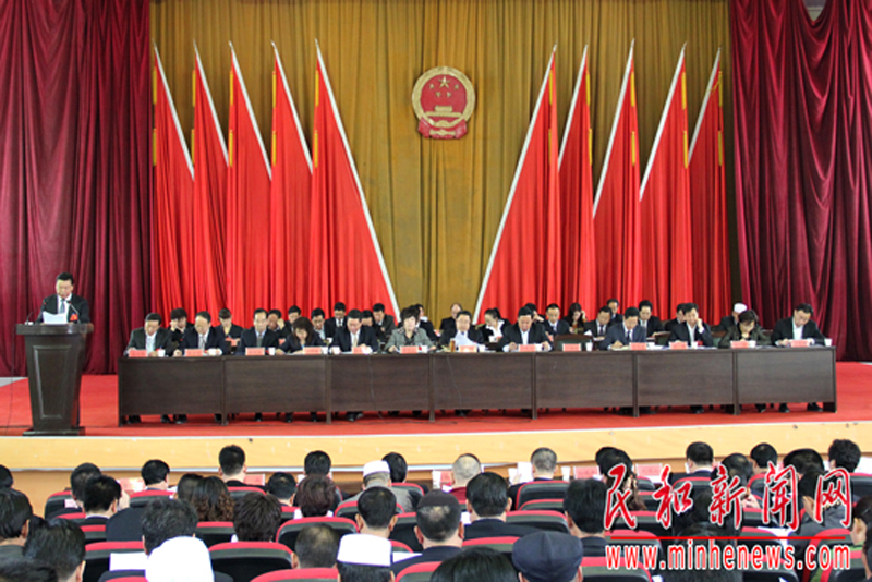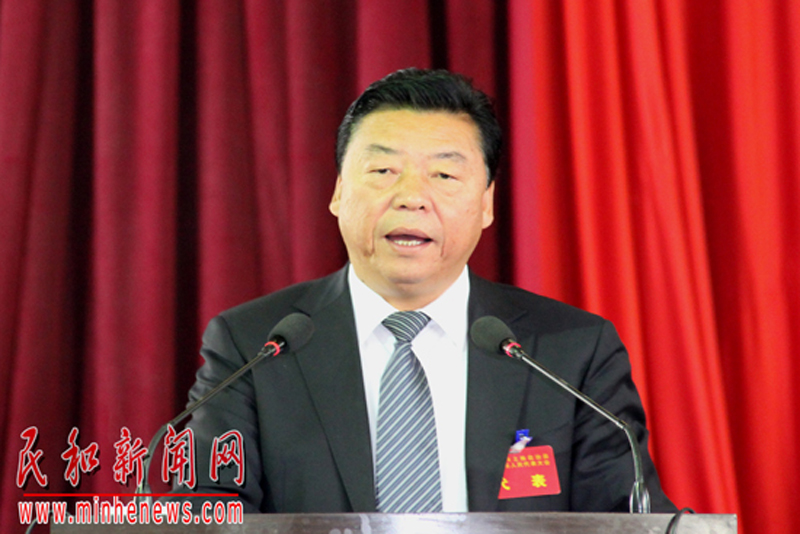 县长沙德林代表民和回族土族自治县人民政府向大会作政府工作报告