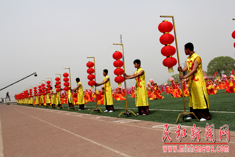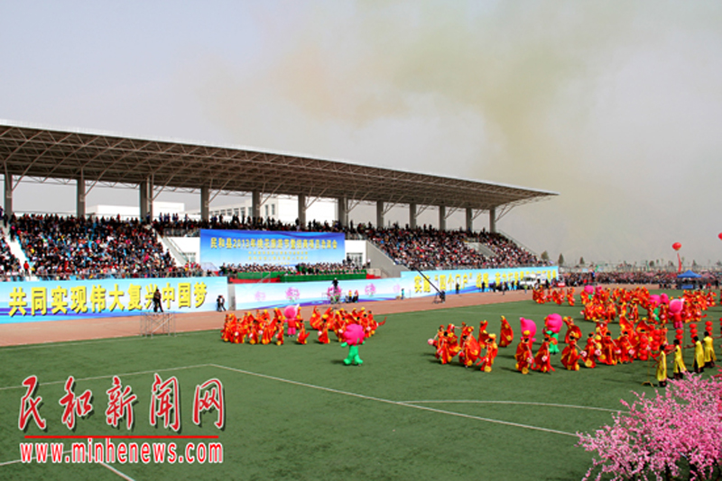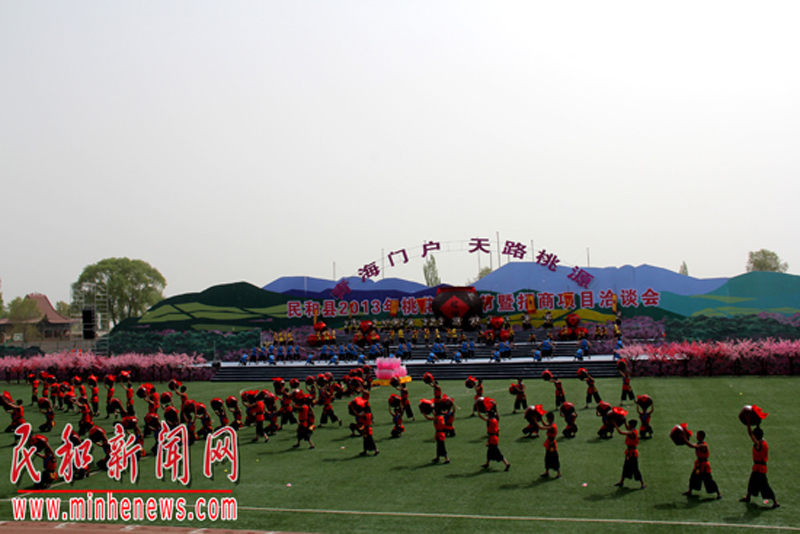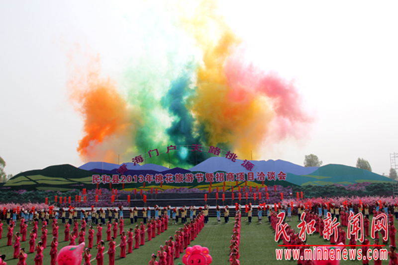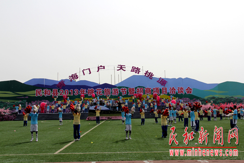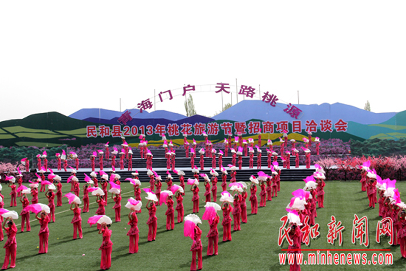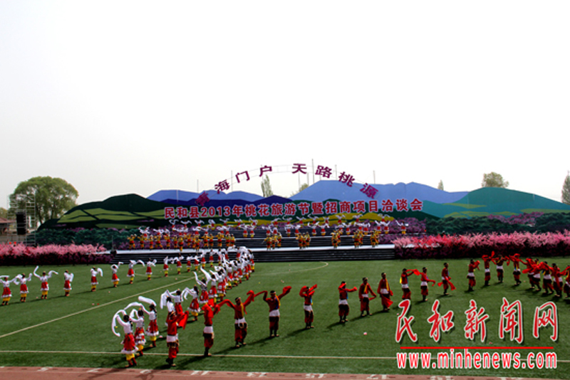 春风又绿河湟大地,桃红尽染青海门户。4月20日上午,民和回族土族自治县以“青海门户,天路桃源”为主题的2013年桃花旅游节暨招商项目洽谈会在民和第一中学体育场开幕。开幕式上,民和县隆重举行了以《灿灿桃花迎宾客》、《魅力家园展新姿》、《激情畅想新民和》等三个篇章为核心的大型文艺演出,展示了新民和建设的火红时代,奏响了民和42万各族人民在党的十八大和省第十二次党代会精神的指引下,发扬新民和精神,建设兰西经济区现代化区位中心城市奋进乐章。 开幕式上,民和县隆重举行了以《灿灿桃花迎宾客》、《魅力家园展新姿》、《激情畅想新民和》等三个篇章为核心的大型文艺演出,展示了新民和建设的火红时代,奏响了民和42万各族人民在党的十八大和省第十二次党代会精神的指引下,发扬新民和精神,建设兰西经济区现代化区位中心城市奋进乐章。(民宣 摄)