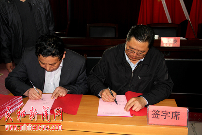 海东地委委员、县委书记赵雄代表县委与乡镇党委签订2013年度工作目标责任书