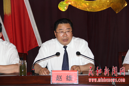 赵雄在讲话中指出,根据海东撤地设市进程,中国共产党海东市第一次代表大会将于6月份召开,这是海东历史上具有划时代意义的一次盛会。这次大会将以党的十八大和省第十二次党代会精神为指导,回顾总结海东建区三十五年来经济社会发展历程和取得的辉煌成就,紧紧围绕党的十八大提出的全面建成小康社会、同心共筑中国梦和省第十二次党代会提出的建设新青海、创造新生活的宏伟目标,科学描绘海东市当前和今后一个时期的发展蓝图和美好前景,就海东继续深入推进“三大历史任务”、“八个方面走在全省前列”目标作出全面安排部署。