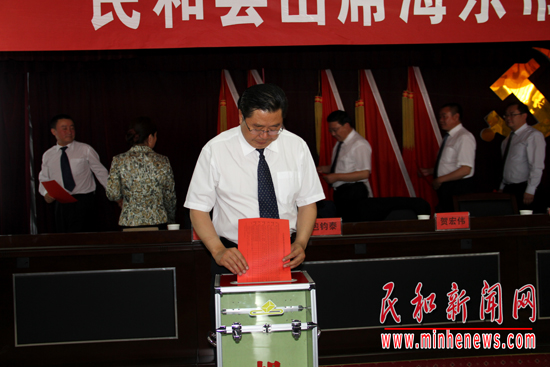 沙德林、贾志军等投票选举出席海东市第一次党代会代表