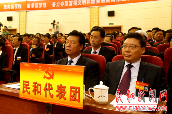 沙德林(左)、贾志军(右)等来自民和县的53名党代表出席海东市第一次党代会