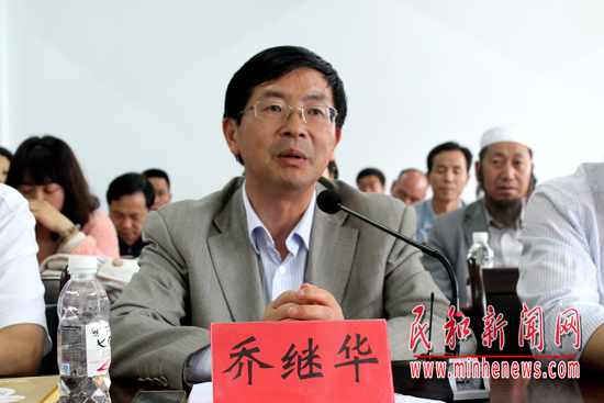 省工商联副主席、青海江河源农牧科技发展有限公司总裁乔继华在座谈会上发言