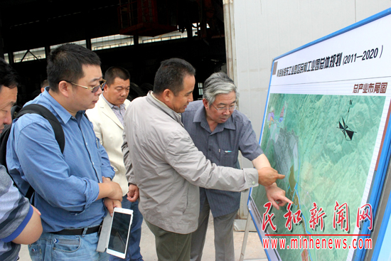 县工业园管委会专职副主任杨发胜向民营企业家介绍民和工业园规划及建设情况
