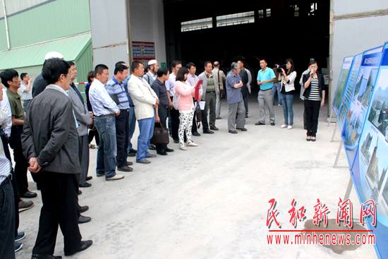 省内外企业家在工业园西部水电有限公司听取公司工作人员讲解